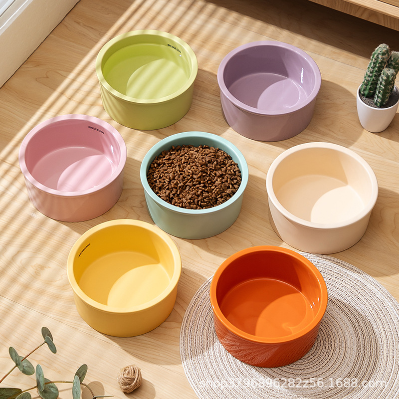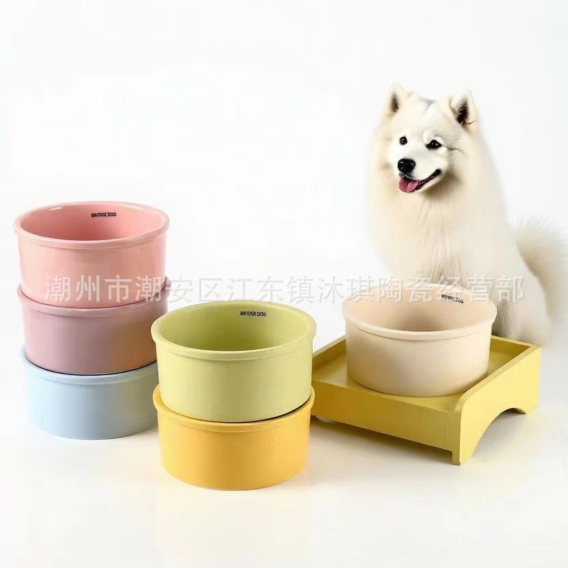 クリームスタイル BD エッジ保護ストレートボウル無地セラミックペットボウル転倒防止水ボウル大容量犬ボウル犬ライスボウル