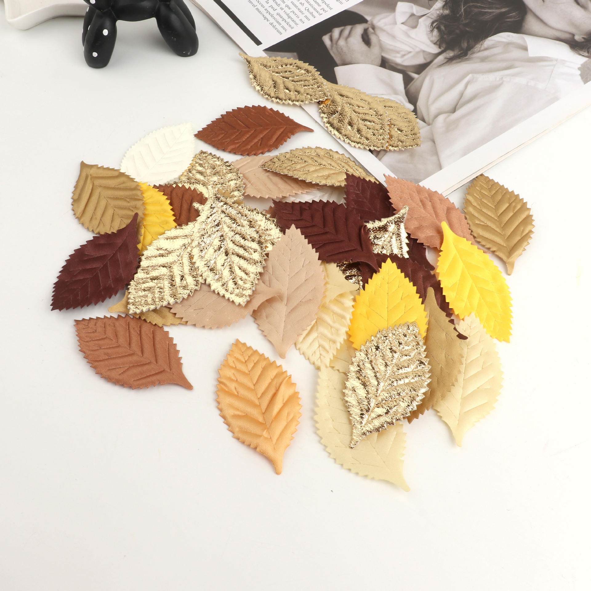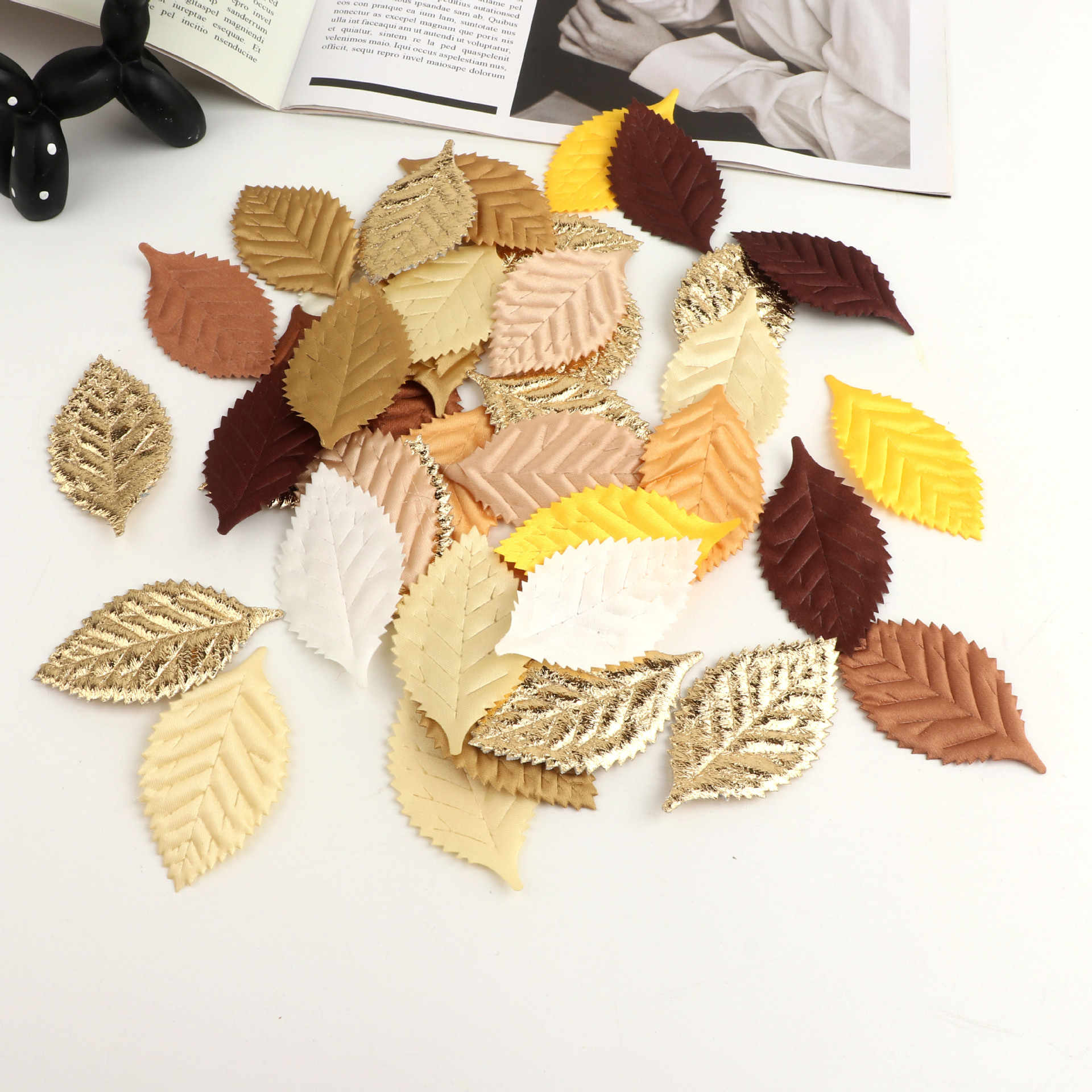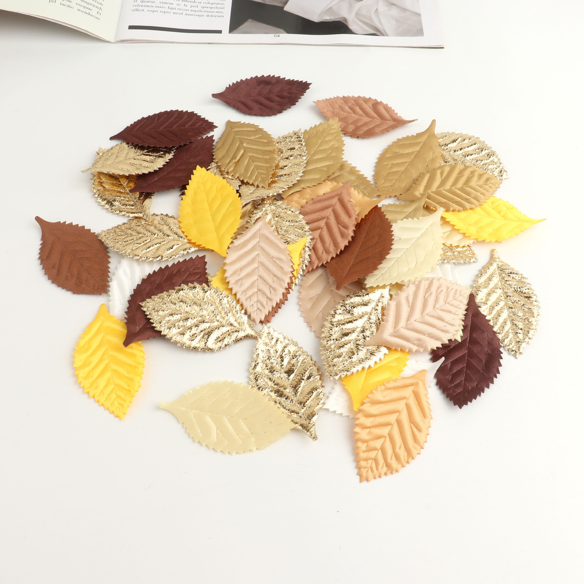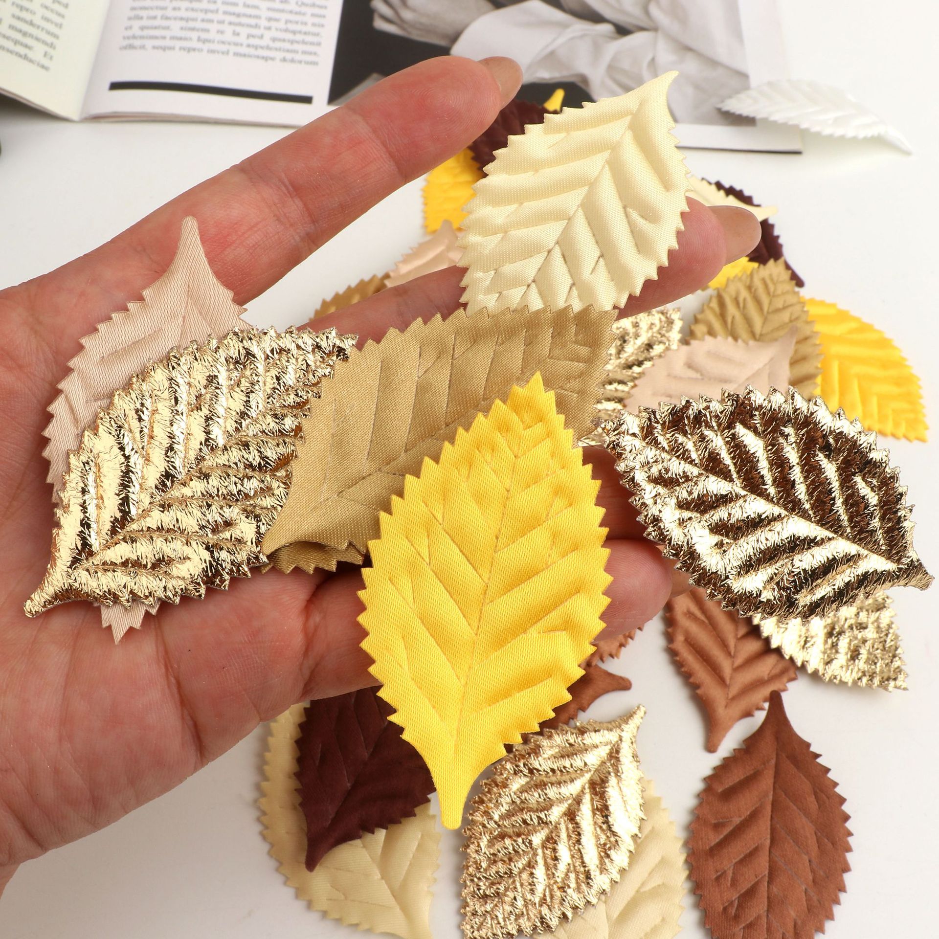 シルク印刷は造花の葉の金色の木の葉の結婚祝いのdiy材料の頭飾りの花輪の部品の50枚の越境をシミュレーションします。