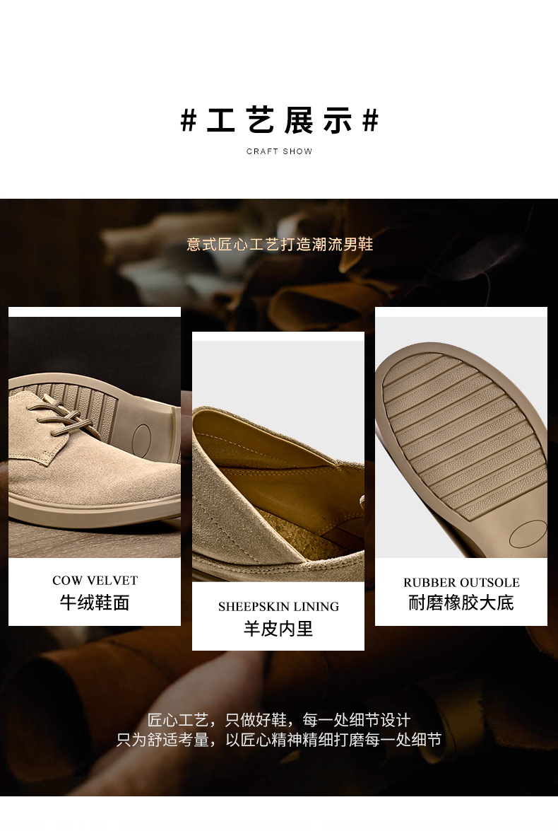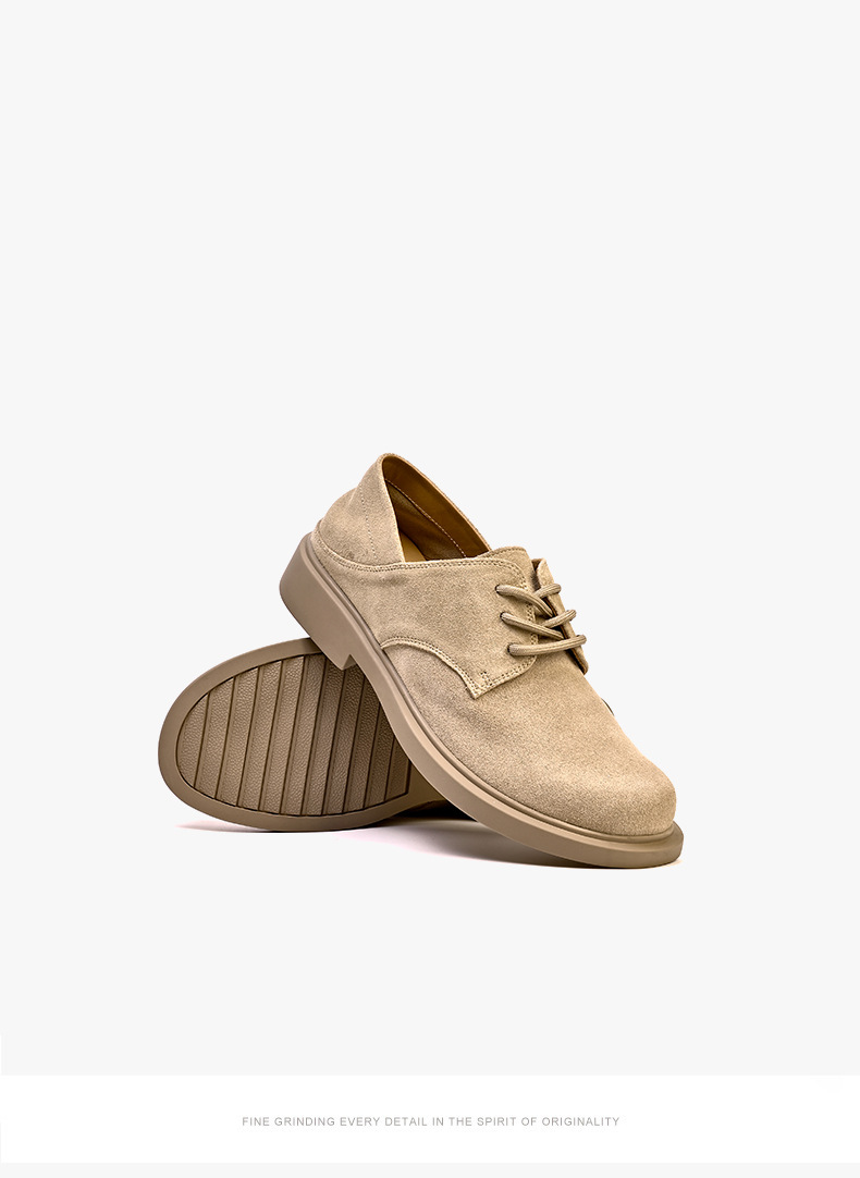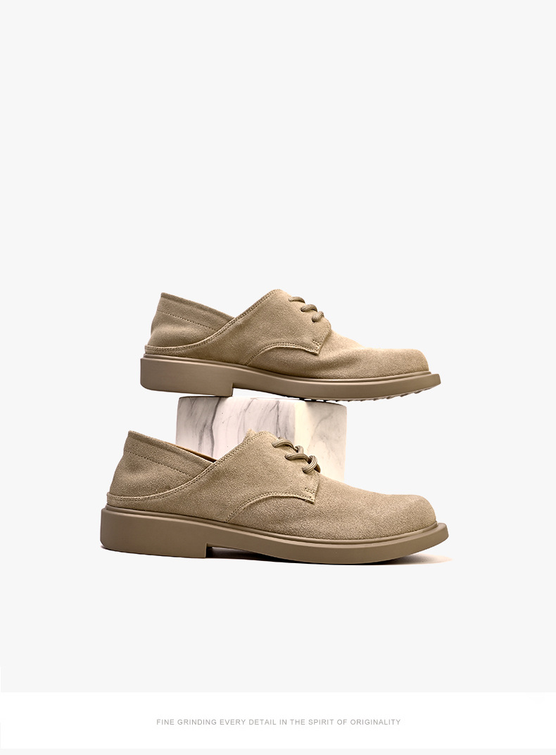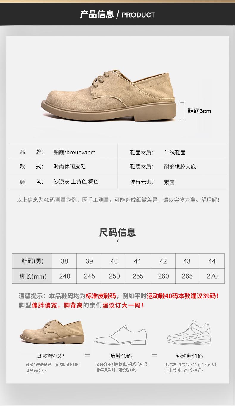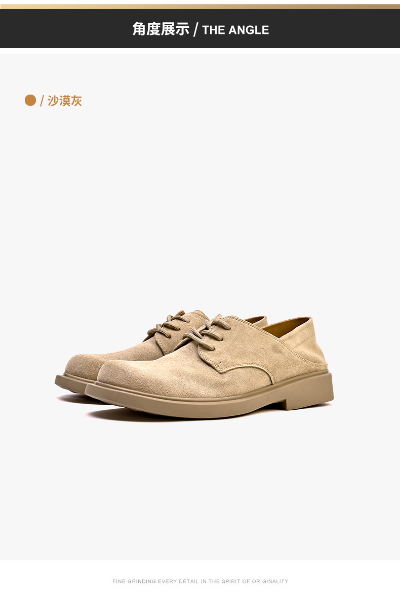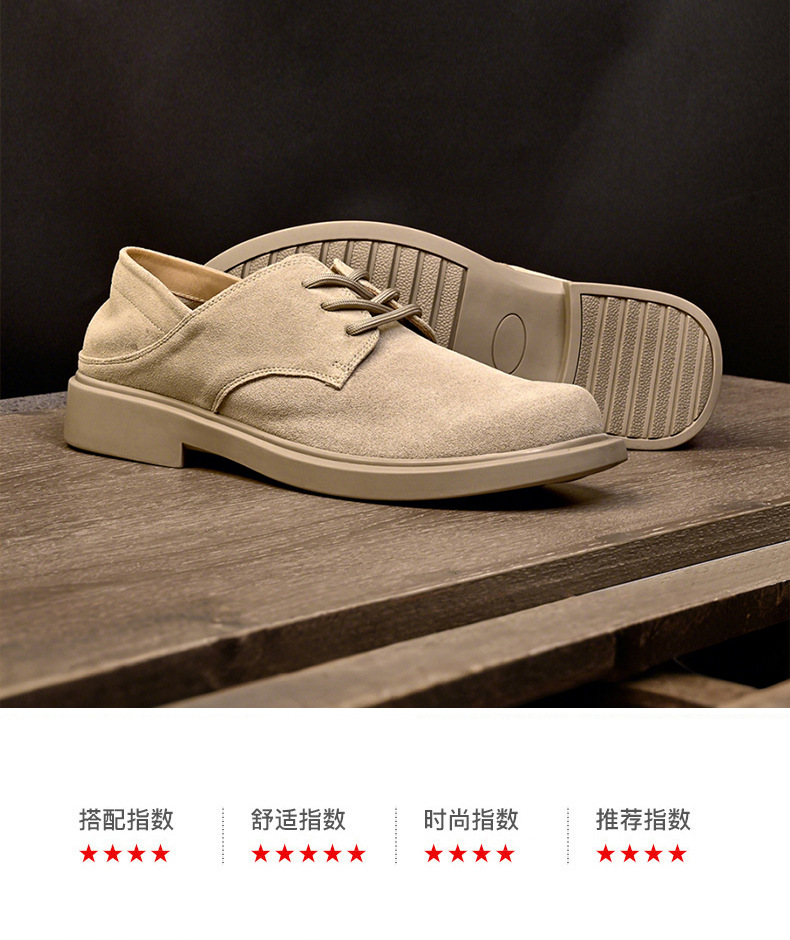 铂巍男士时尚皮鞋牛绒系带圆头商务休闲鞋软底防滑系带小皮鞋男