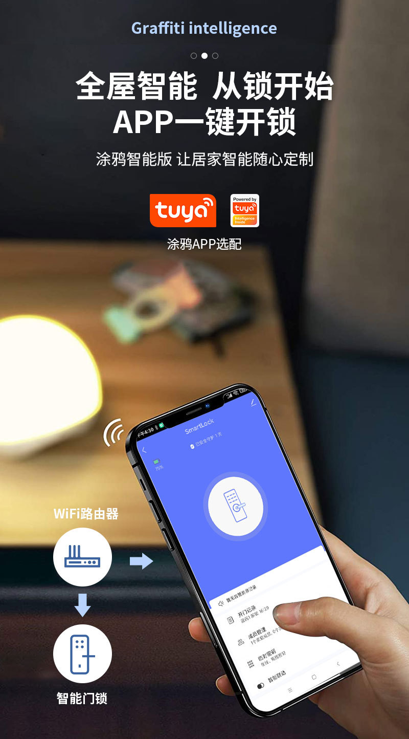 涂鸦智能APP指纹手机wifi远程开锁家用防盗门电子门锁密码锁