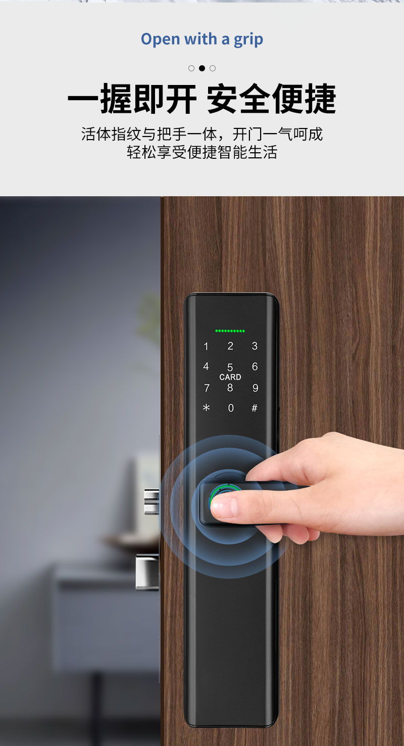 ルームドア指紋ロック Tuya WiFi オフィスワングリップオープン電子スマートロックパスワードスワイプカードアパートドアロック