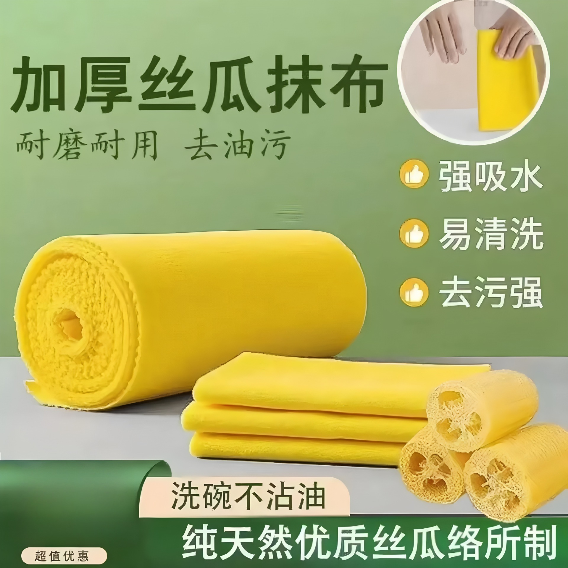 黄色丝瓜抹布厨房加厚洗碗布去油不掉毛家用吸水不沾油清洁百洁布