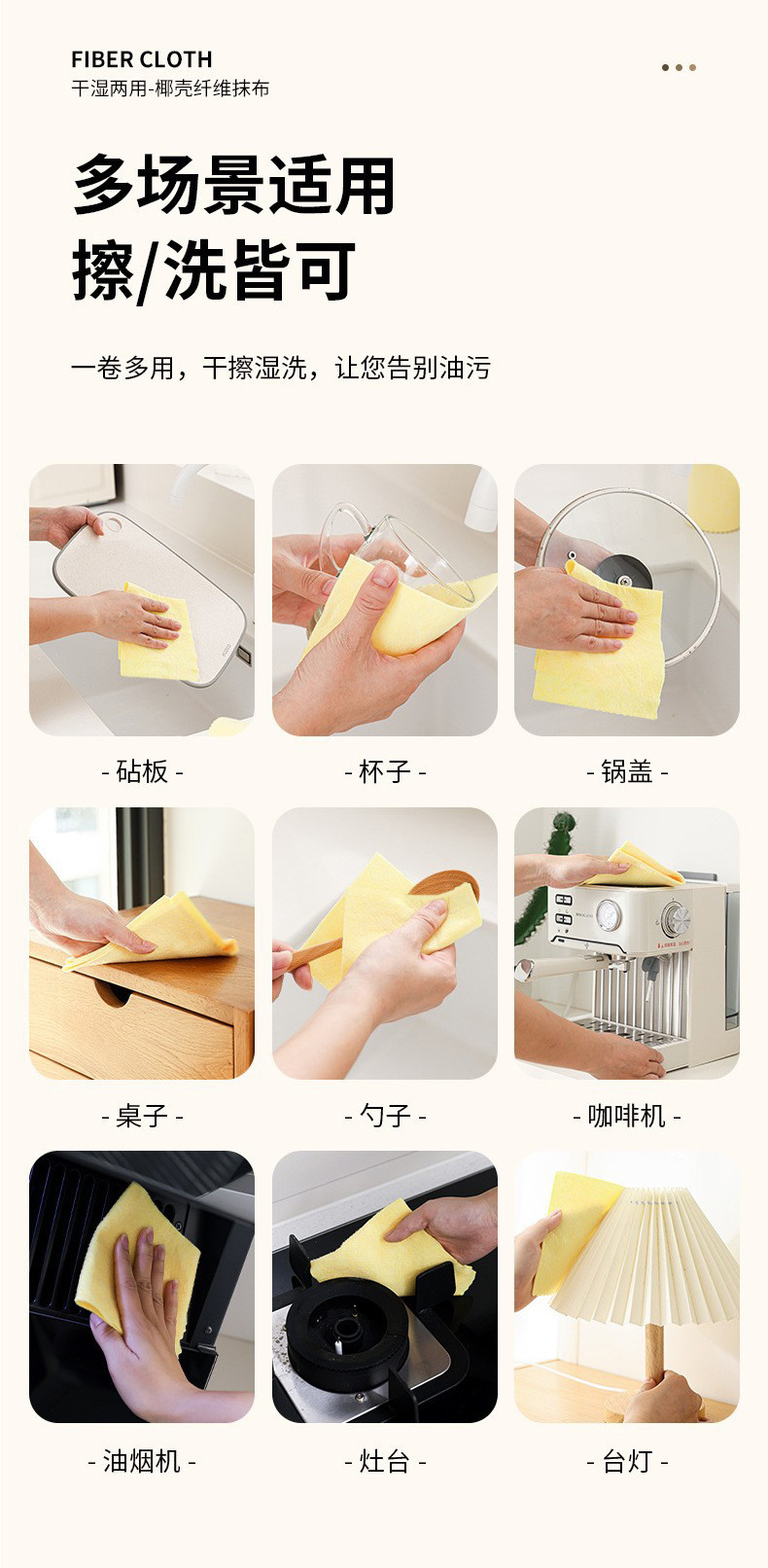 丝瓜色抹布厨房去油污吸水吸油洗碗布家用易清洗加厚卷装丝瓜抹布