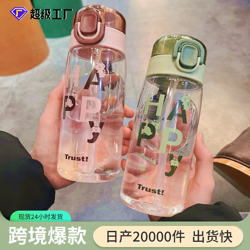 ストローカップインスタイルパターン人気のプラスチックウォーターカップ高温耐性スケール学生カップ卸売シンプルなケトル