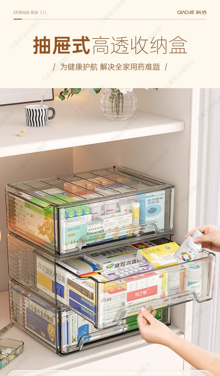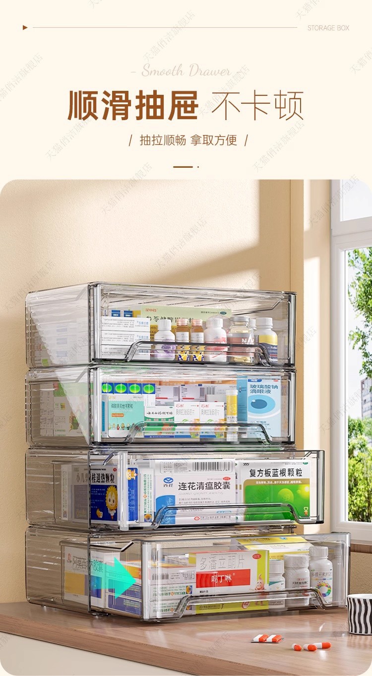 药箱药物收纳盒家用大容量抽屉式透明家庭装药品收纳箱桌面医药箱