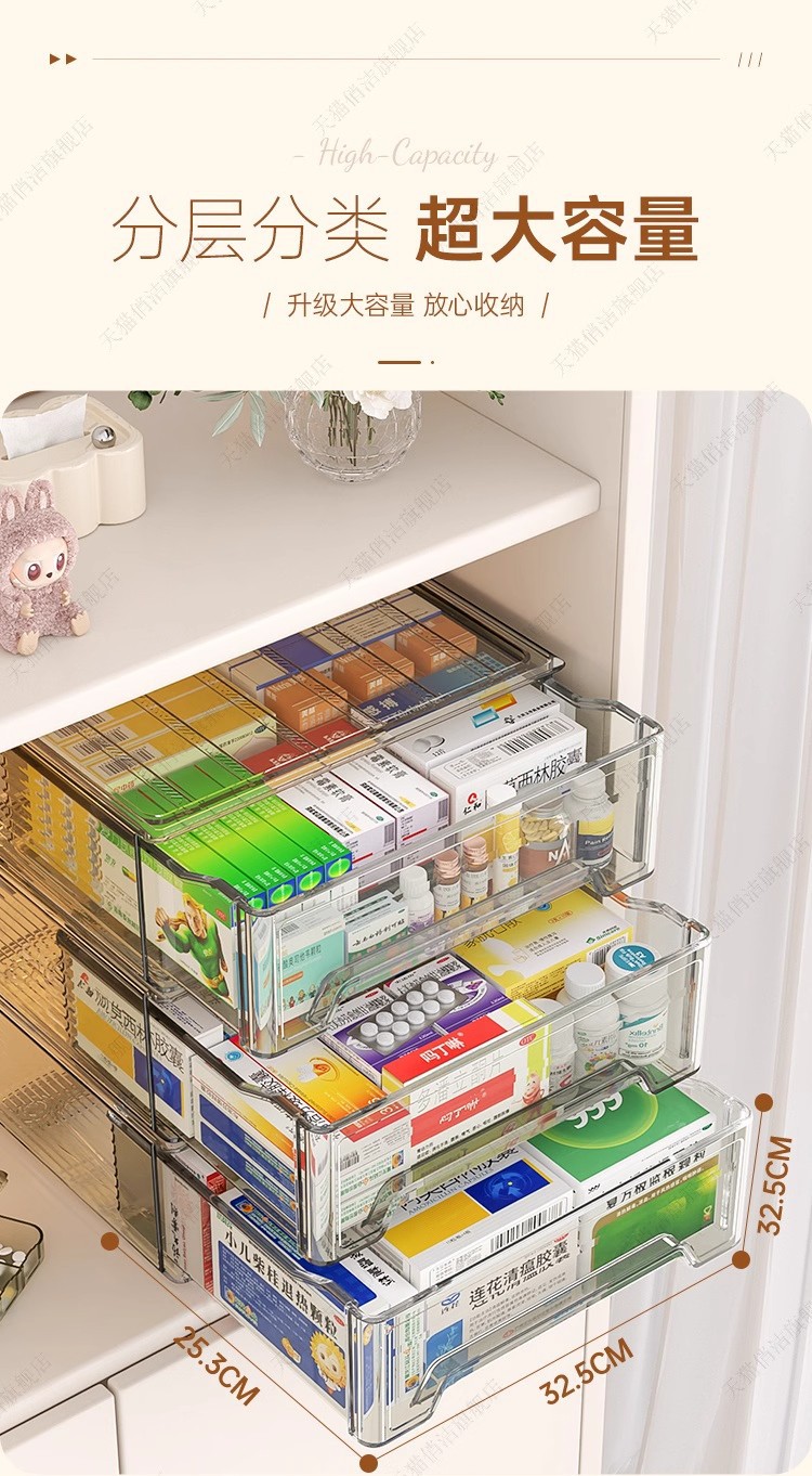 星优抽屉式家庭装药箱家用大容量医药箱透明可视药物收纳盒