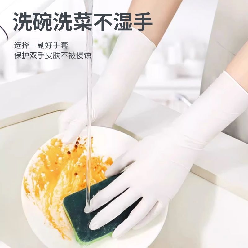 一次性丁腈手套12寸白色防滑耐磨家务清洁手套餐饮厨房酒店卫生用