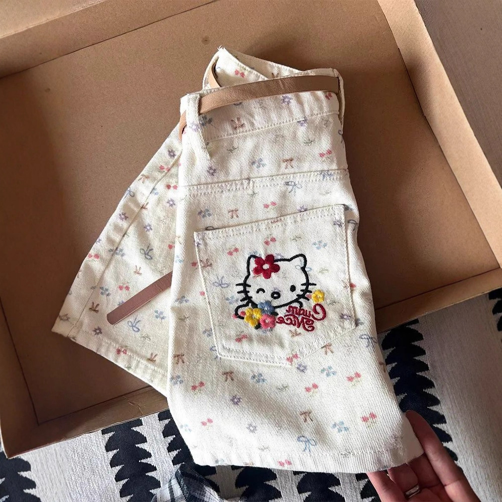 可爱蝴蝶结樱桃印花设计感牛仔短裤女2025夏季新款修身显瘦热裤潮