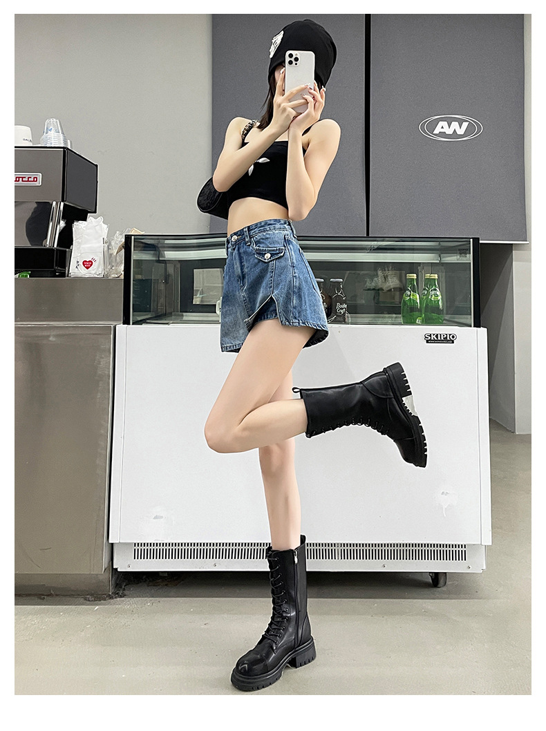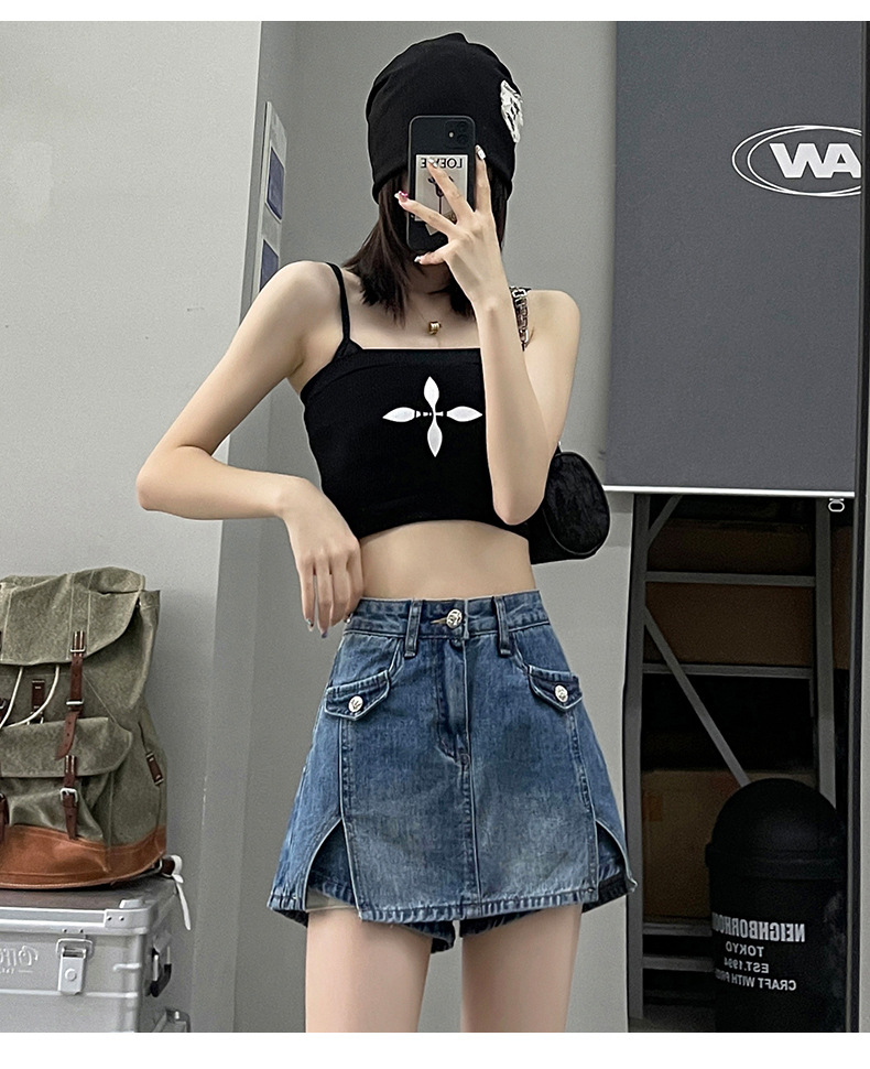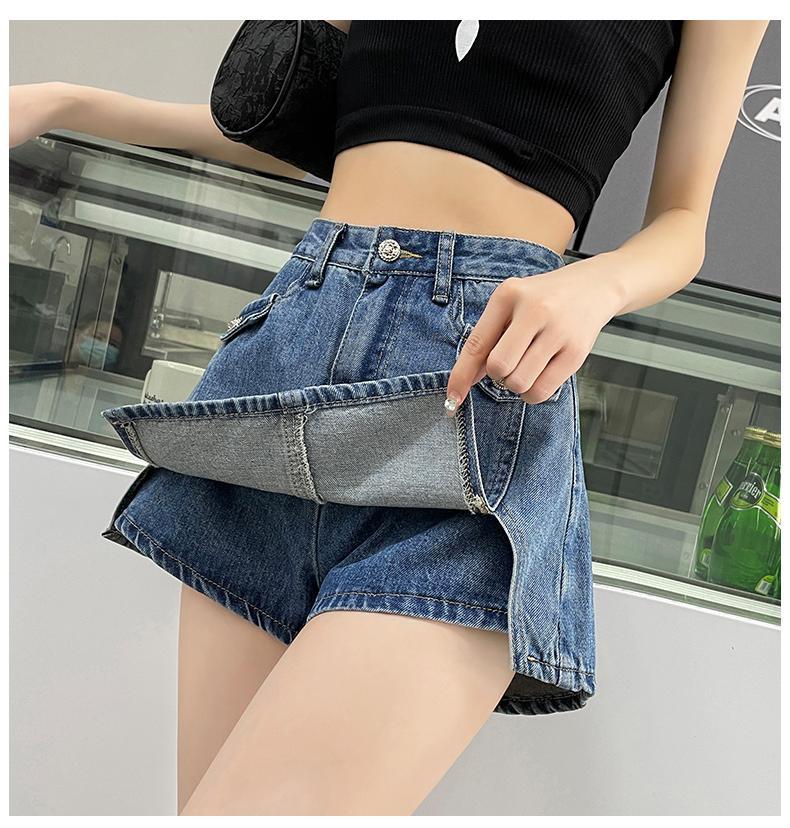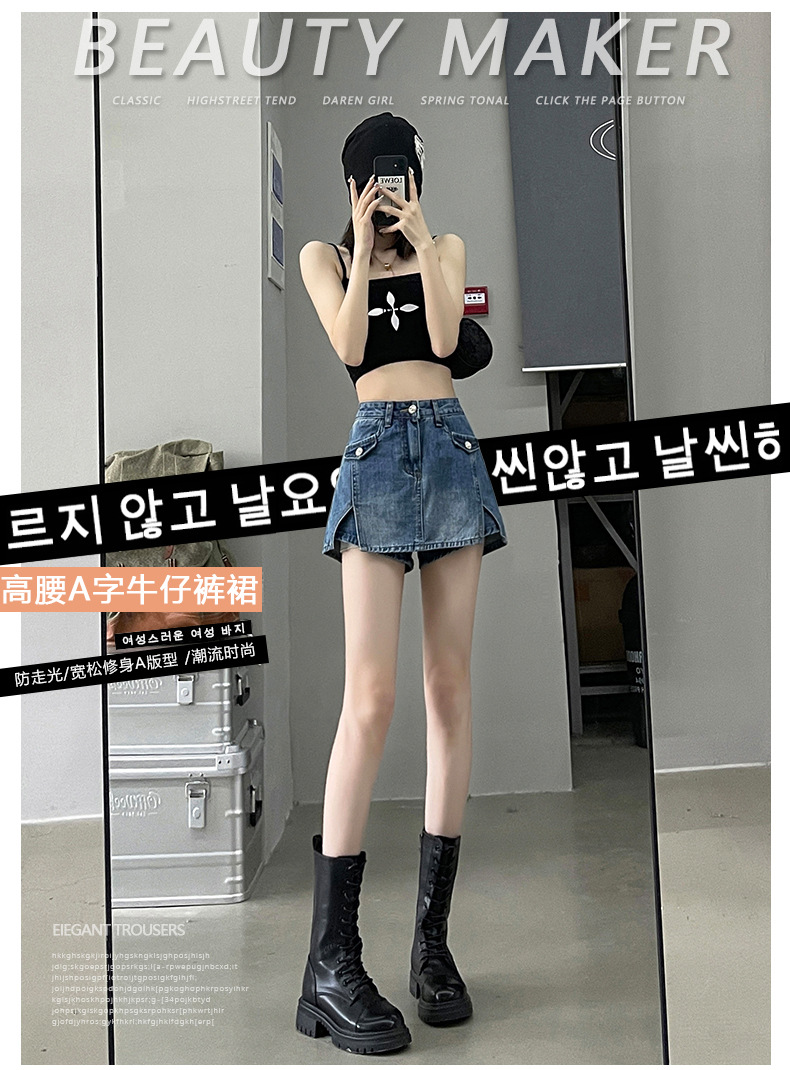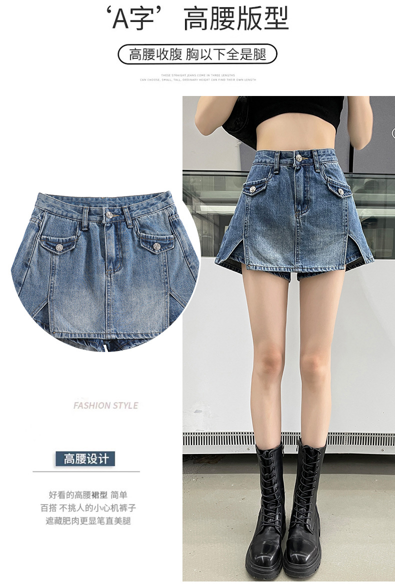 开叉牛仔短裤裙裤女春夏季薄款2025新款高腰辣妹小个子a字短裙子