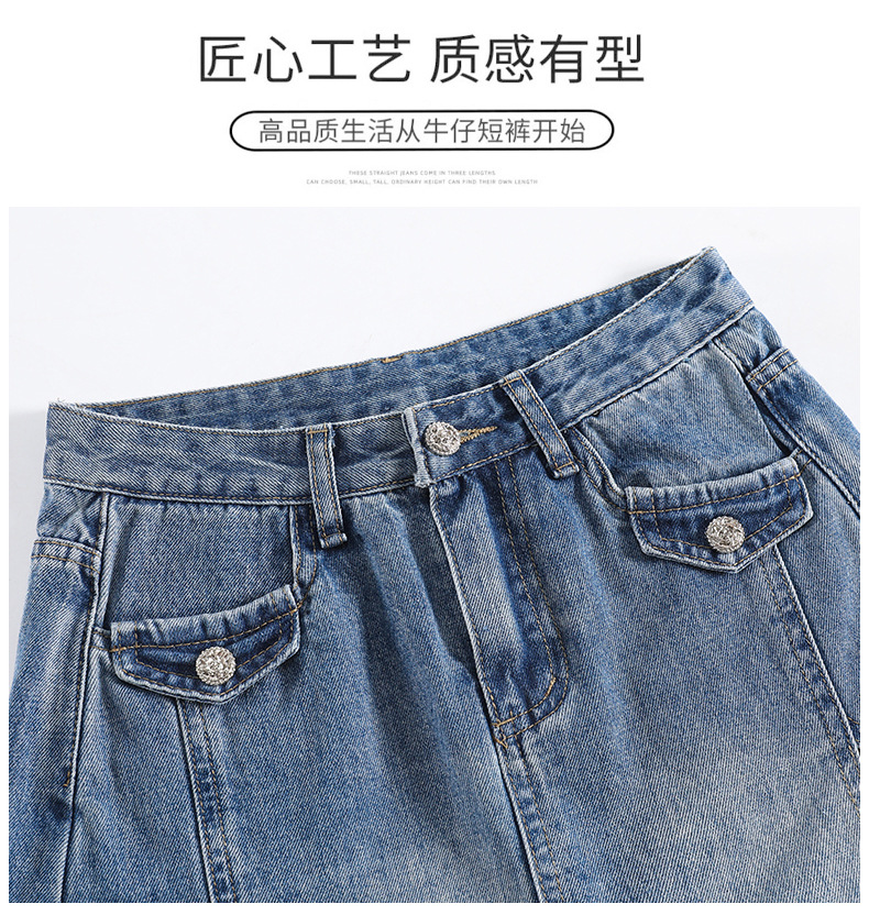 アメリカンレトロデニムショートパンツ女性用2025夏薄いハイウエストルーズスリムストレートワイドレッグ5点ミディアムパンツ