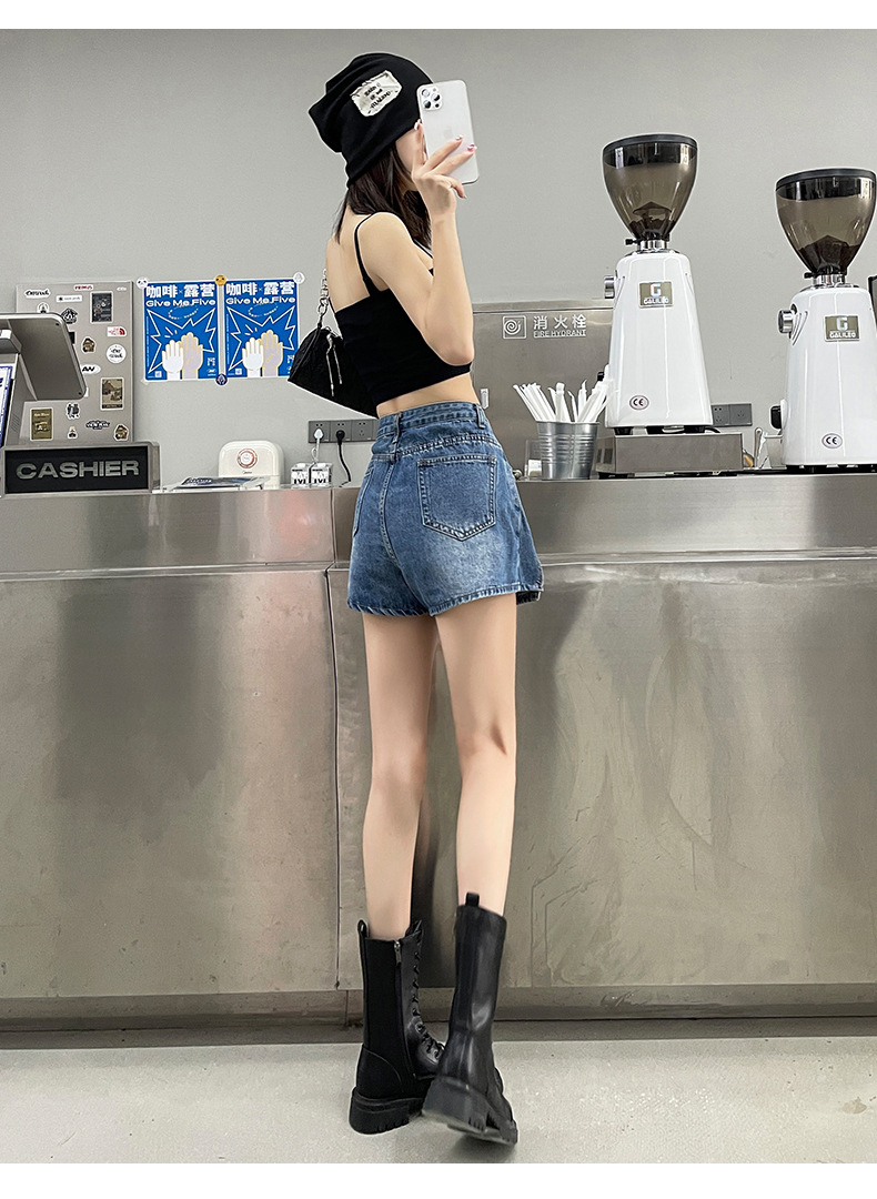 アメリカンレトロデニムショートパンツ女性の夏の新しいアウターハイウエストタイトストレッチAライン超ショートホットガールホットパンツ
