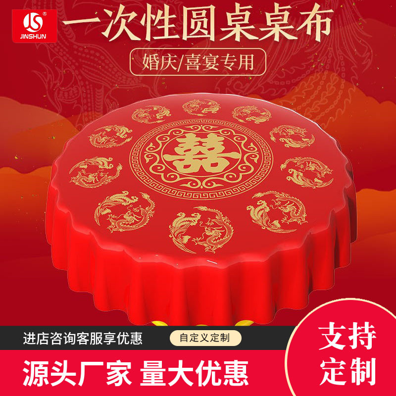 使い捨てテーブルクロス結婚円卓赤い祝い事結婚祝いの贅沢な高級感を厚くするプラスチック布フィルムテーブル布