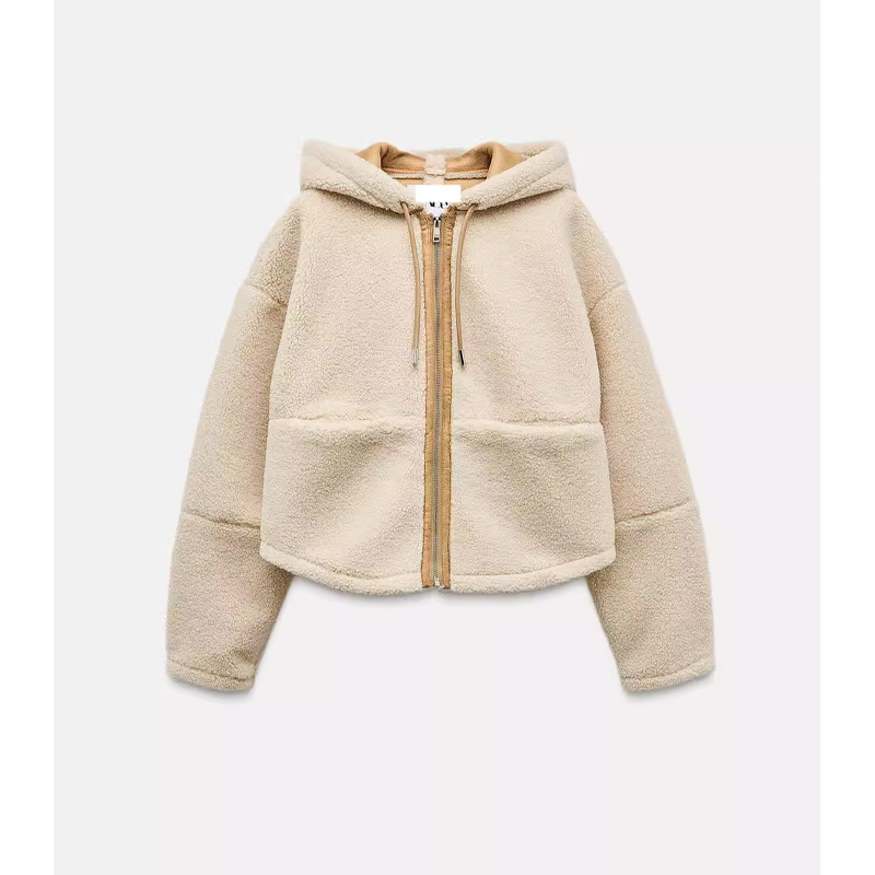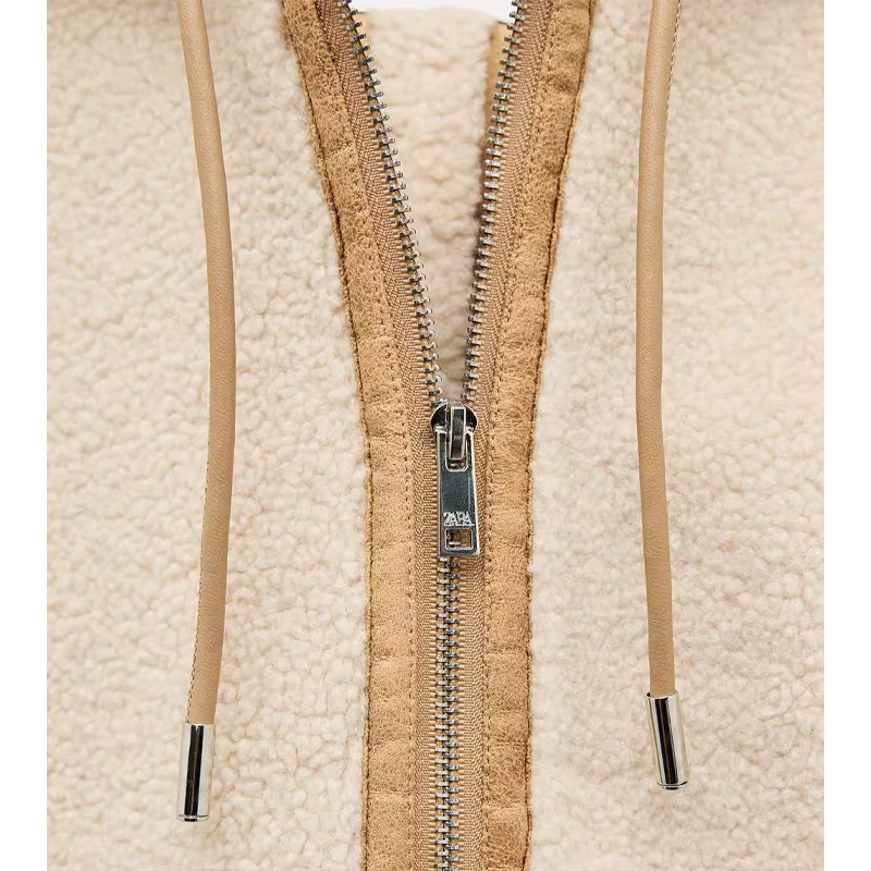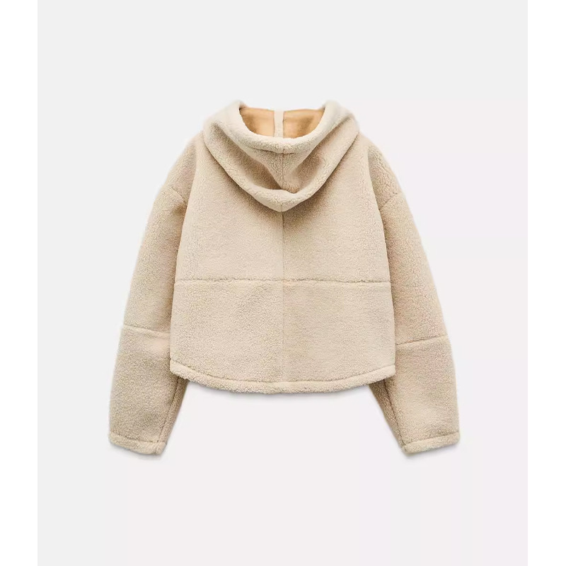 2024秋款女装仿羊羔绒摇粒绒拉链连帽外套开衫 430644