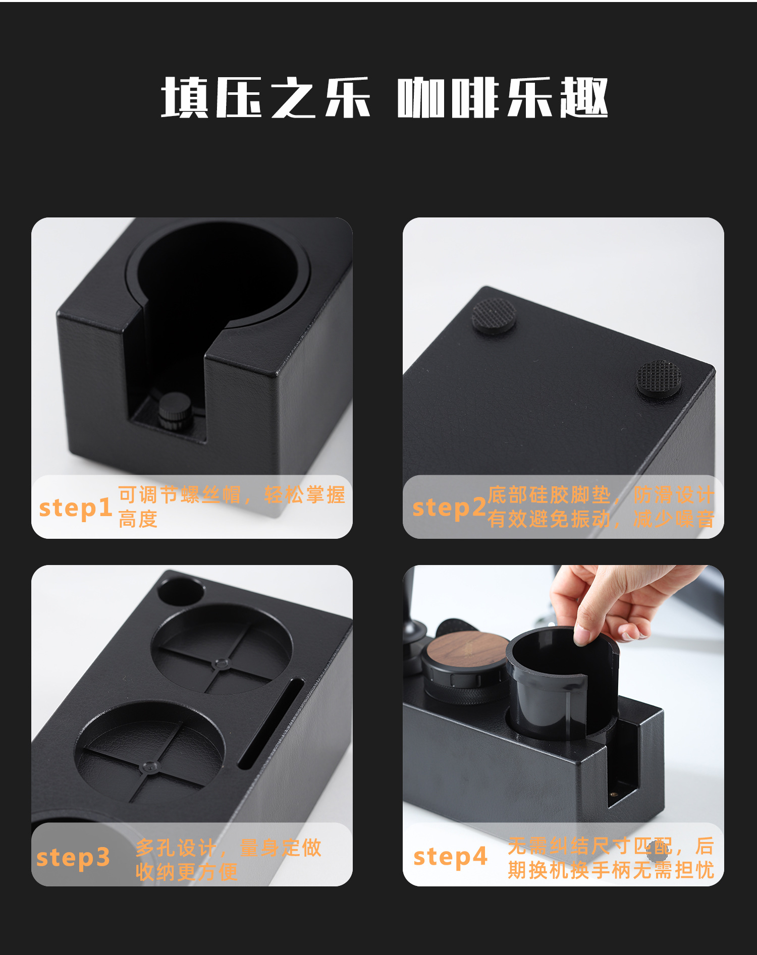 ABS咖啡压粉底座多功能收纳盒长方形收纳架三件套51/58mm通用