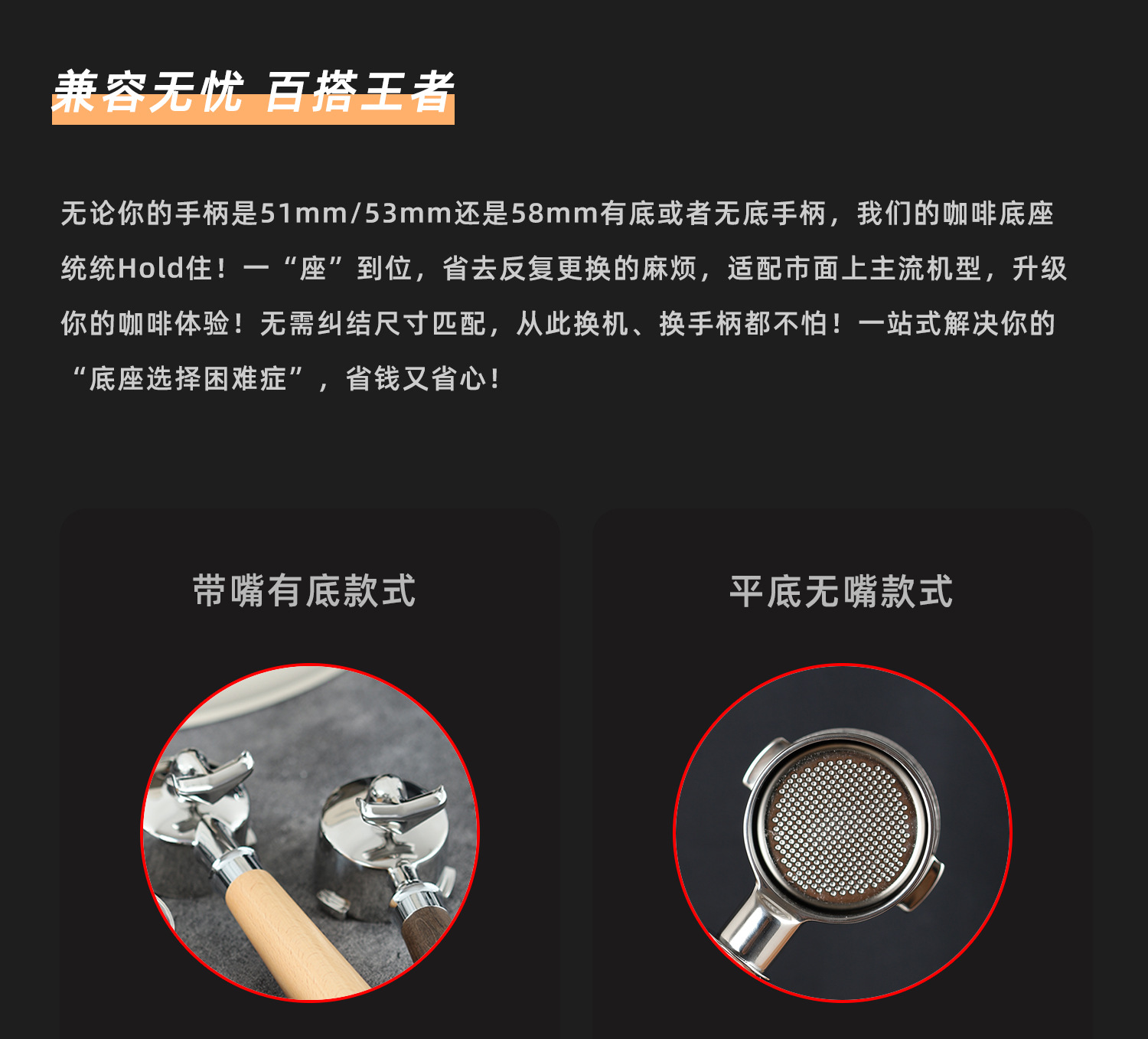 咖啡压粉座套装布粉器底座咖啡器具咖啡机配件黑色51mm3件套