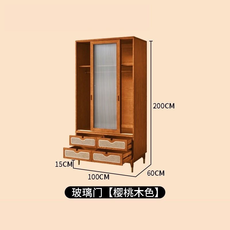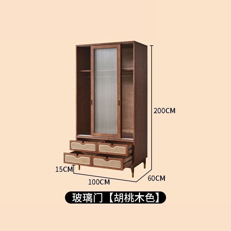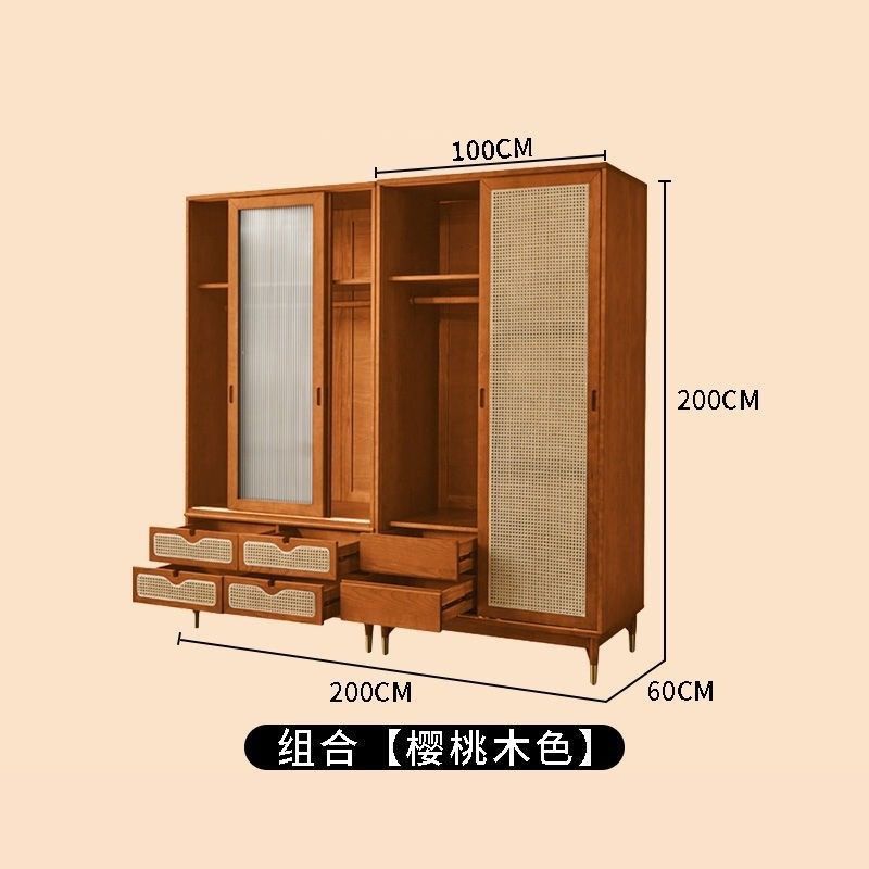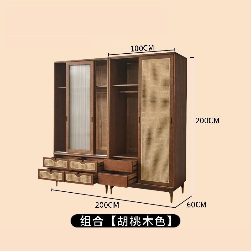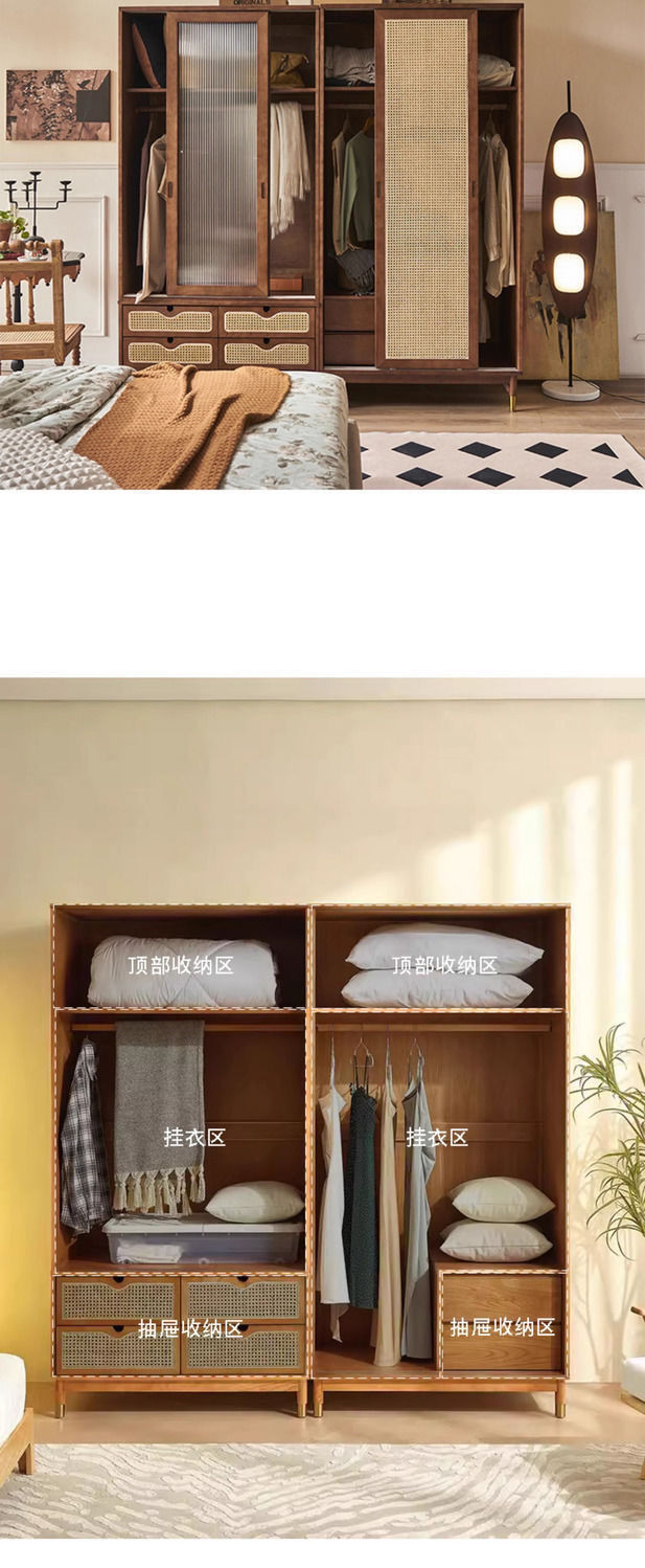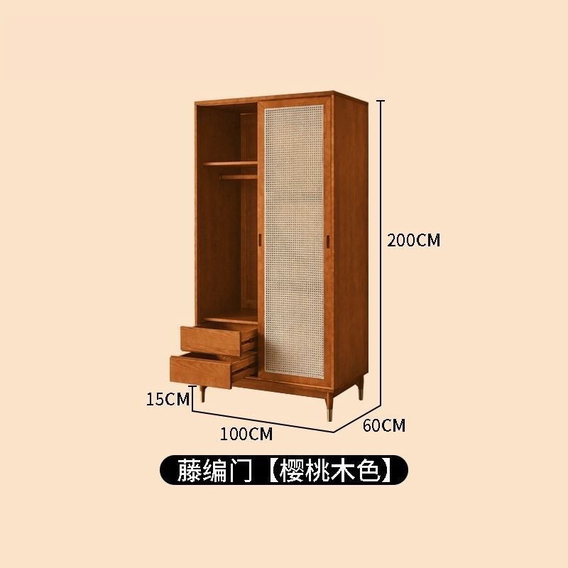 实木北欧日式藤编衣柜组合小户型家用推拉门储物柜卧室民宿衣橱