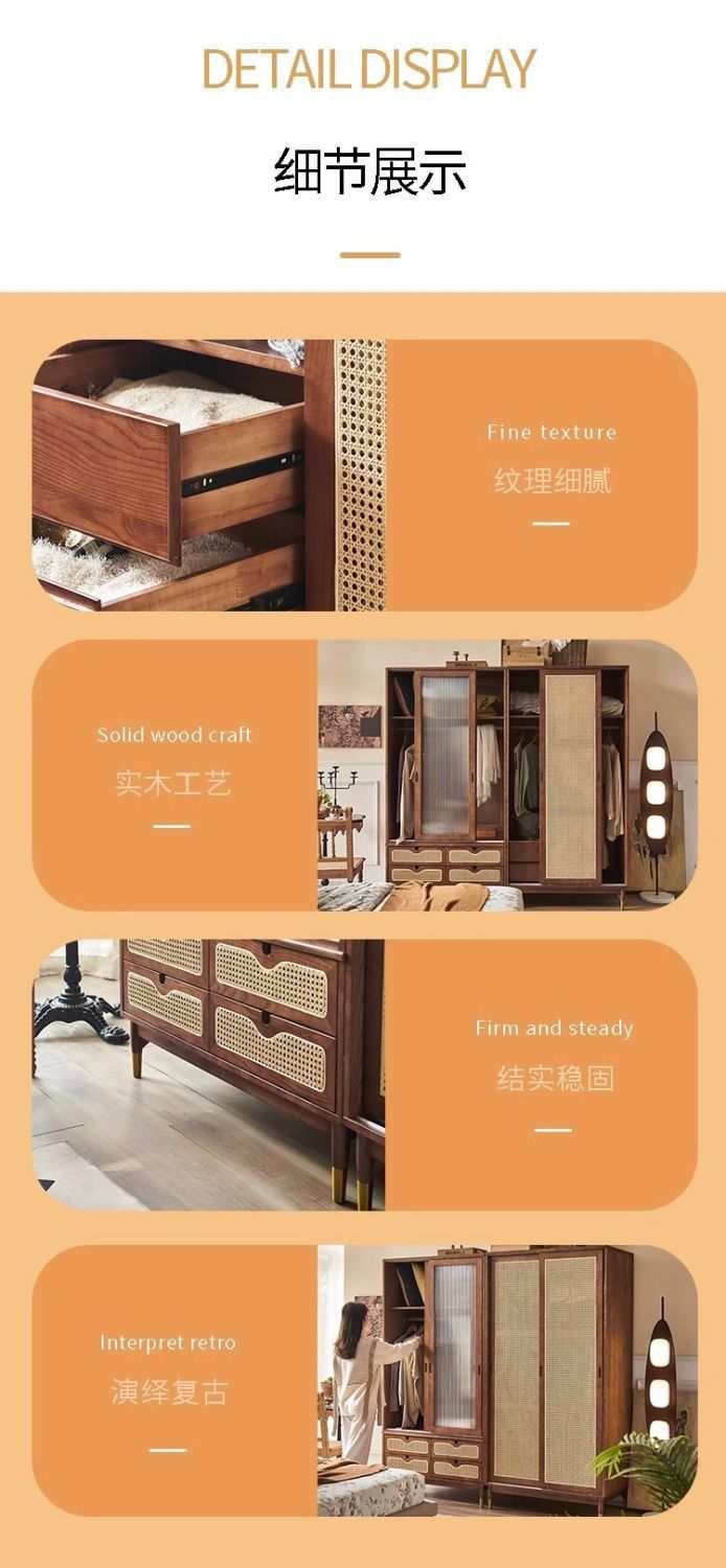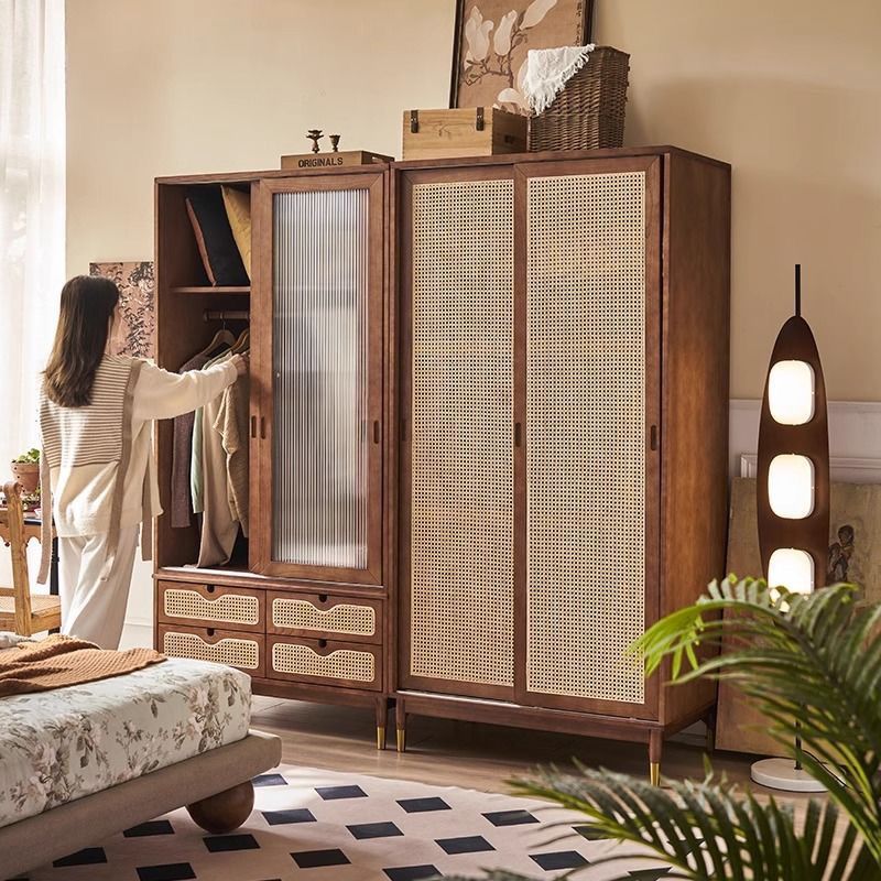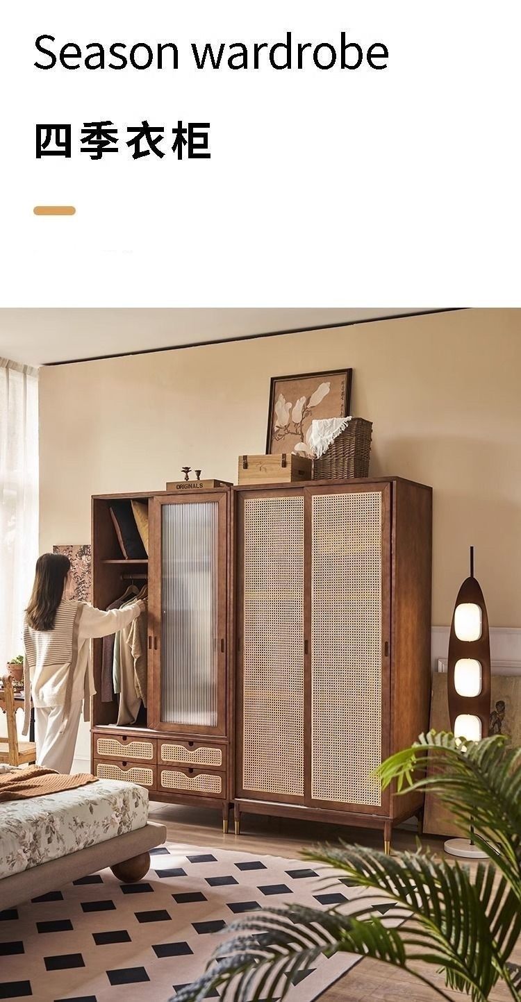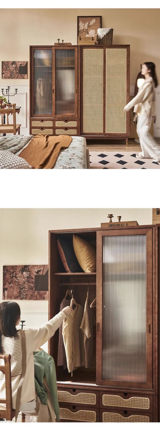 实木北欧日式藤编衣柜组合小户型家用推拉门储物柜卧室民宿衣橱