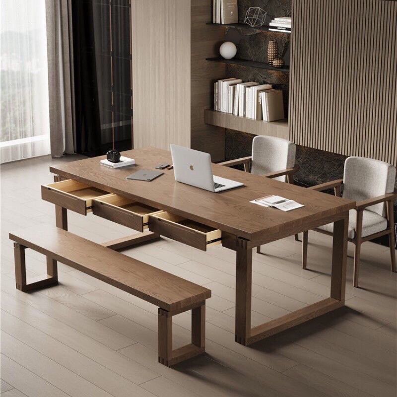 リビングルームシンプルな無垢材Mobien引き出しデスクモダンなホームワークベンチロングテーブルダブルスタディテーブルオフィスデスク