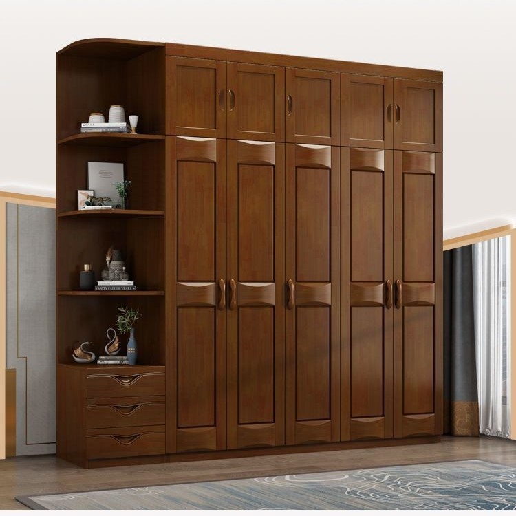 無垢材ワードローブ 3456 ドア新中国風大型ワードローブシンプルモダン大小タイプ寝室経済的なワードローブ