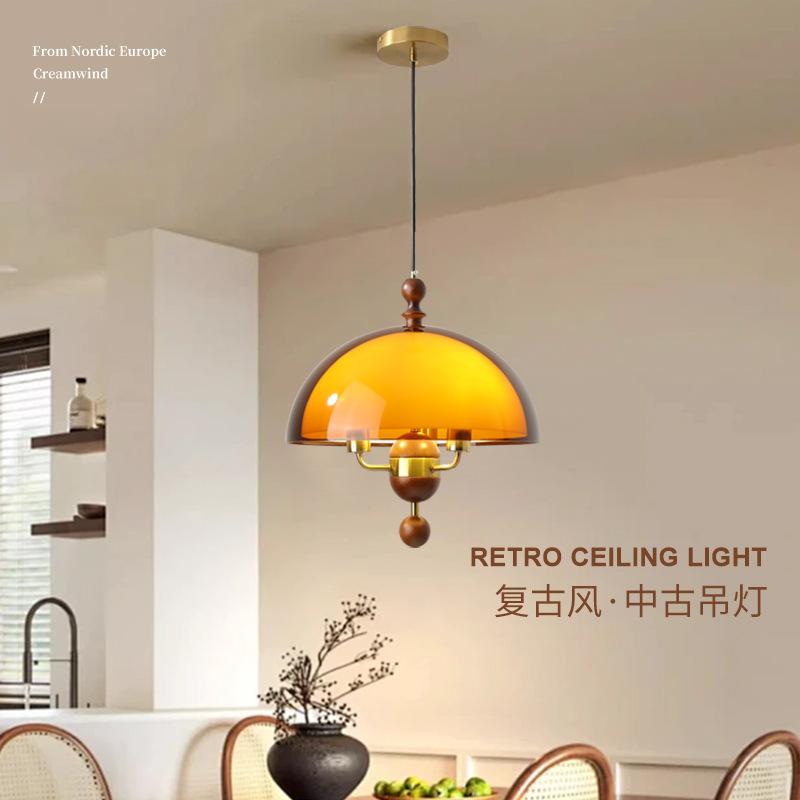 中古风餐厅吊灯复古胡桃木纹餐桌灯法式南洋风吧台灯具2025新款