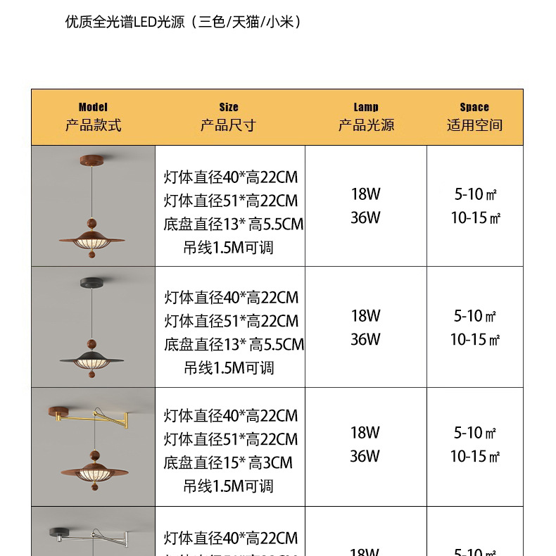 灯光颜色 胡桃木色【吊线款】40cm,胡桃木色【吊线款】51cm,黑色【吊线款】40cm,黑色【吊线款】51cm,胡桃木色【摇臂款】40cm,胡桃木色【摇臂款】51cm,黑色【摇臂款】40cm,黑色【摇臂款】51cm