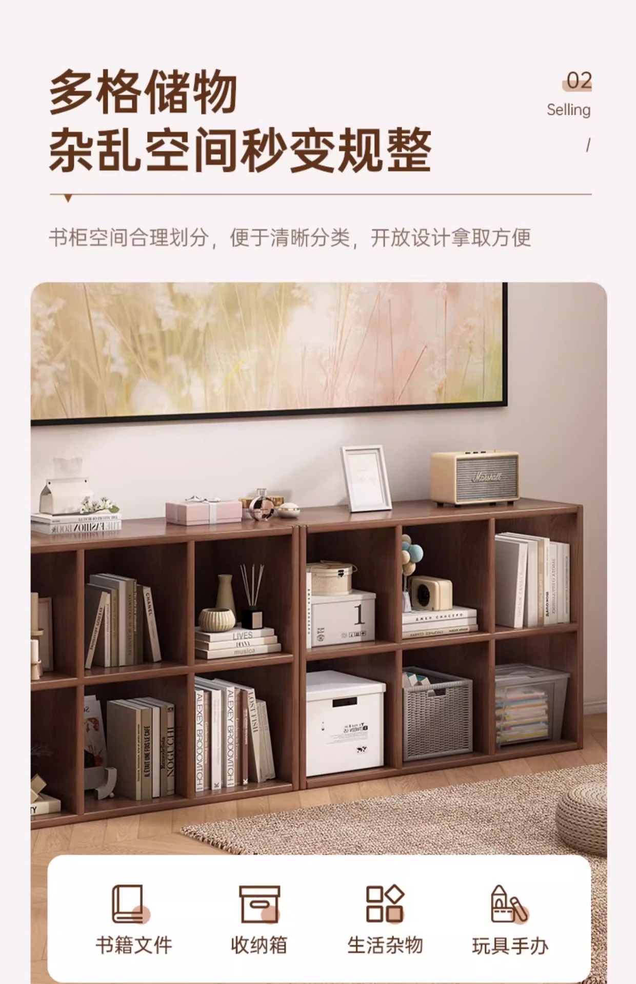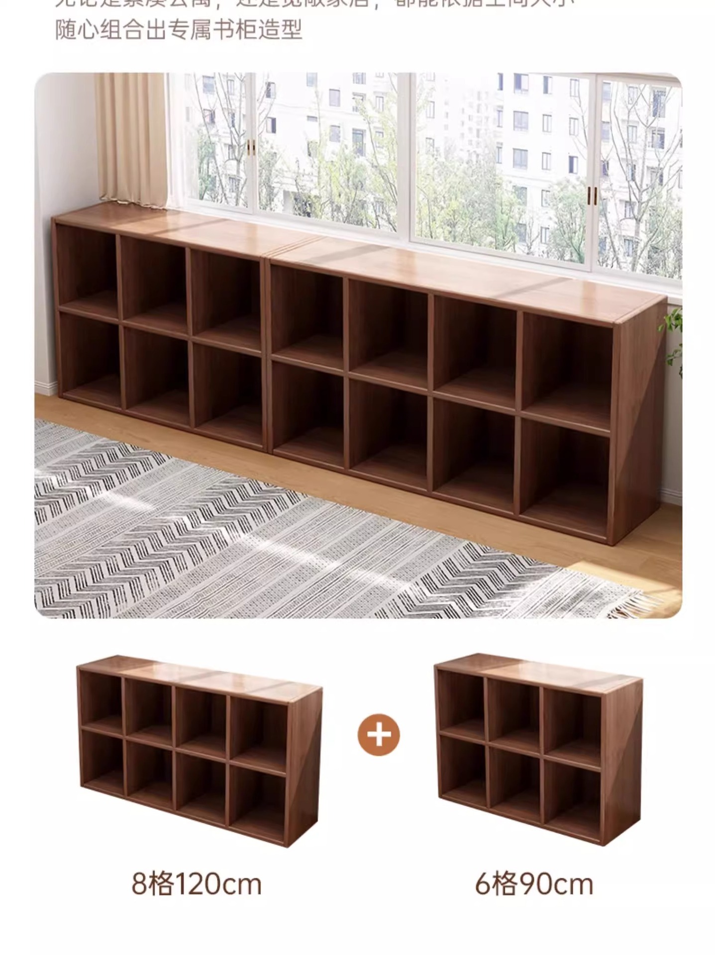 实木书架置物架客厅靠墙落地格子柜家用书柜储物柜一体组合柜矮柜