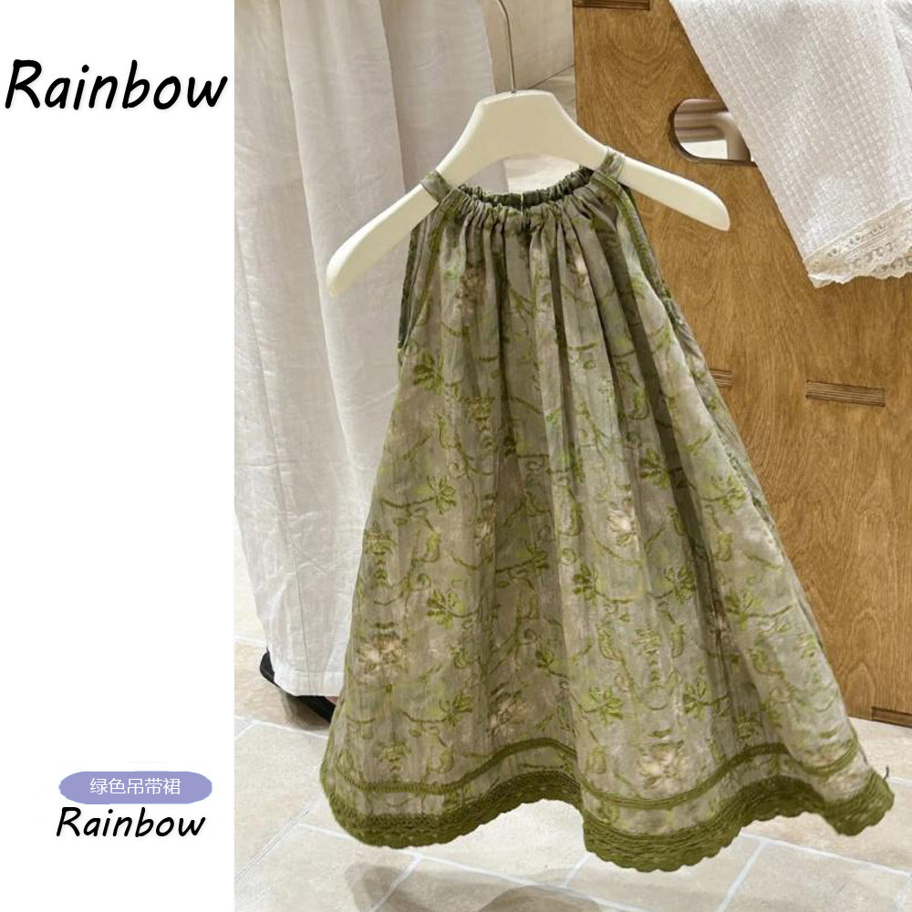 女の子ドレス 2025 新しい子供の超見栄えの良いレトロ花柄サスペンダースカート女の子ファッショナブルなルーズプリンセスドレス