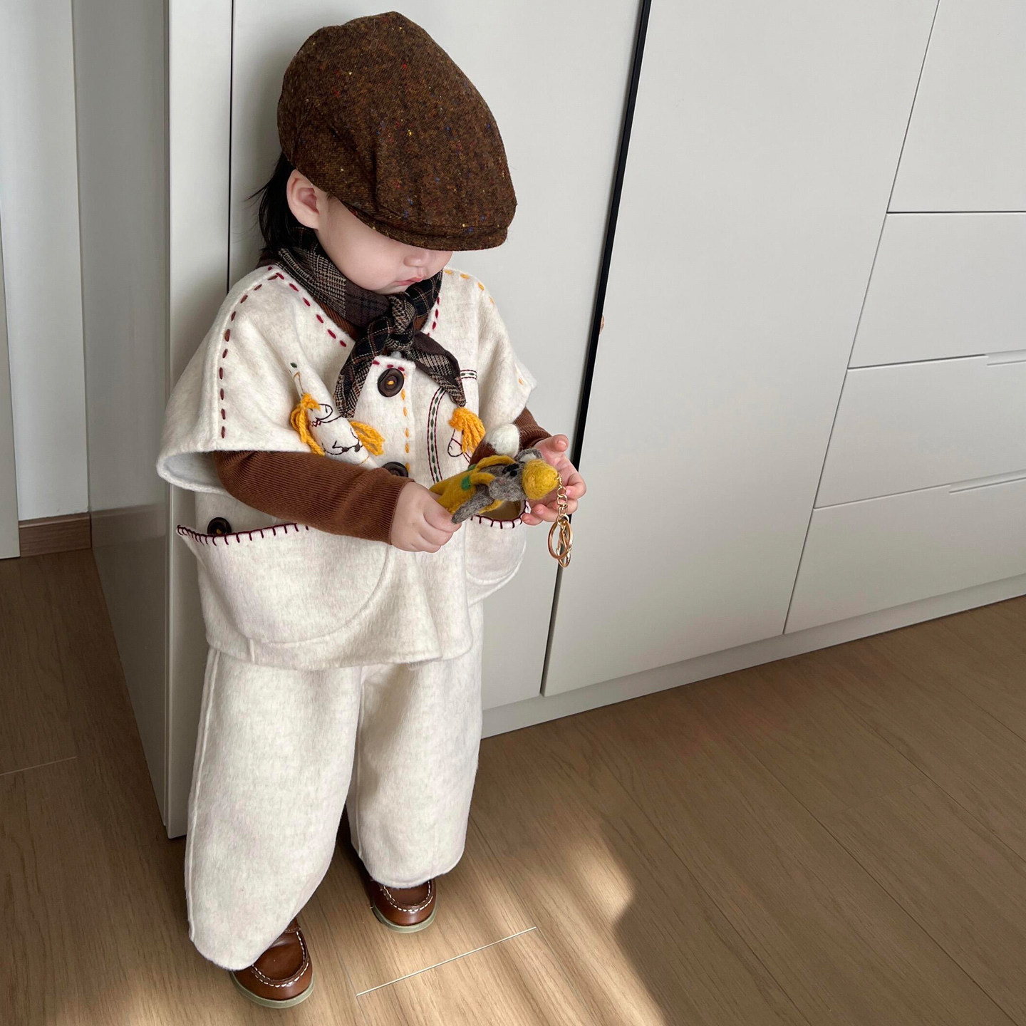 男童套装冬新款儿童好看宽松百搭加厚保暖毛呢外套男孩阔腿休闲裤