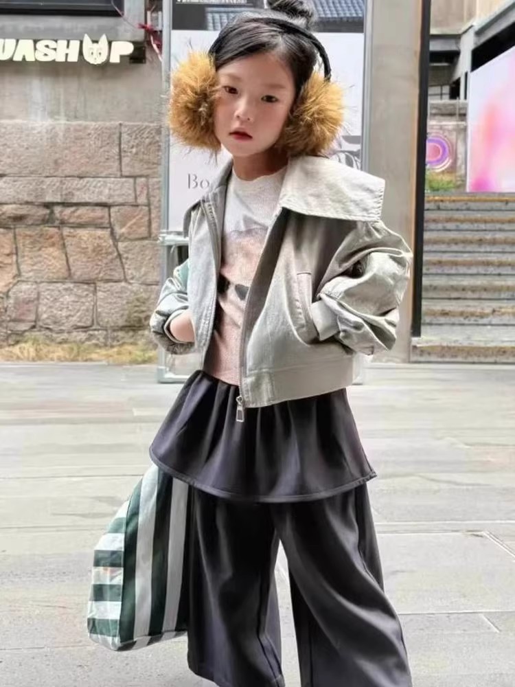 女の子コート 2025 秋の新作子供用ゆったりおしゃれ万能トップスおしゃれな女の子ラペル服