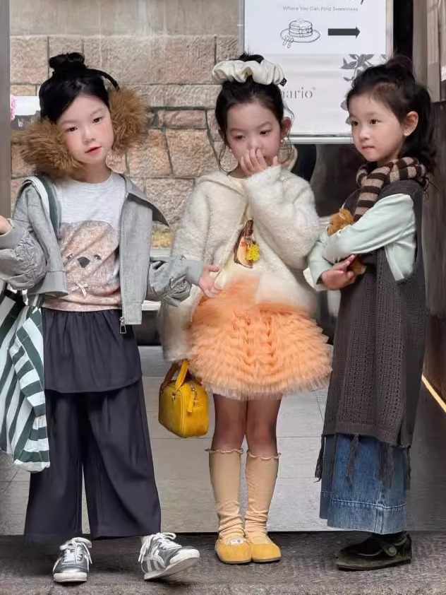 女の子スーツ秋 2025 新しい子供のルーズコットンニットサスペンダーファッショナブルな女の子カジュアルラブジーンズ