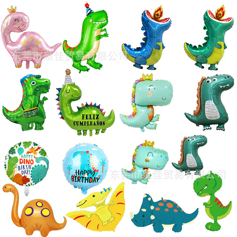 Q版卡通恐龙铝膜气球儿童生日装饰霸王龙长颈龙森林派对气球批发