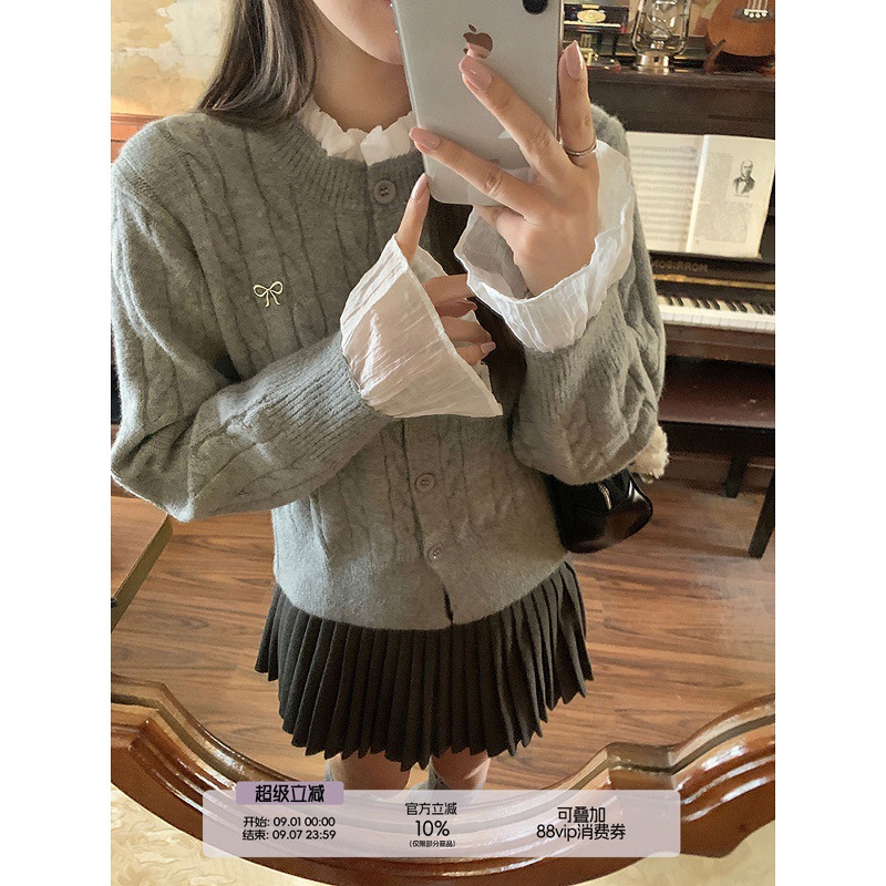 韩系简约学院风麻花毛衣开衫2025秋季短款时尚百搭圆领针织衫女