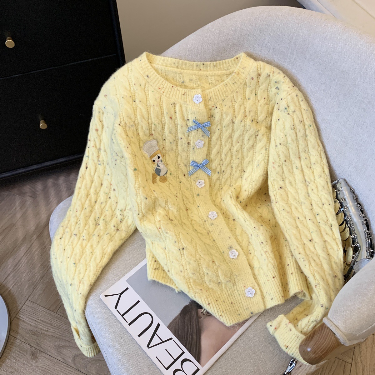 韩系卡通刺绣麻花毛衣开衫女秋冬新款奶fufu软糯高级感针织外套女