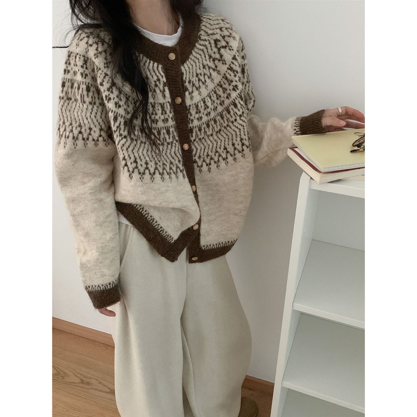 2025秋冬韩系穿搭宽松针织开衫时尚百搭软糯上衣费尔岛毛衣外套女