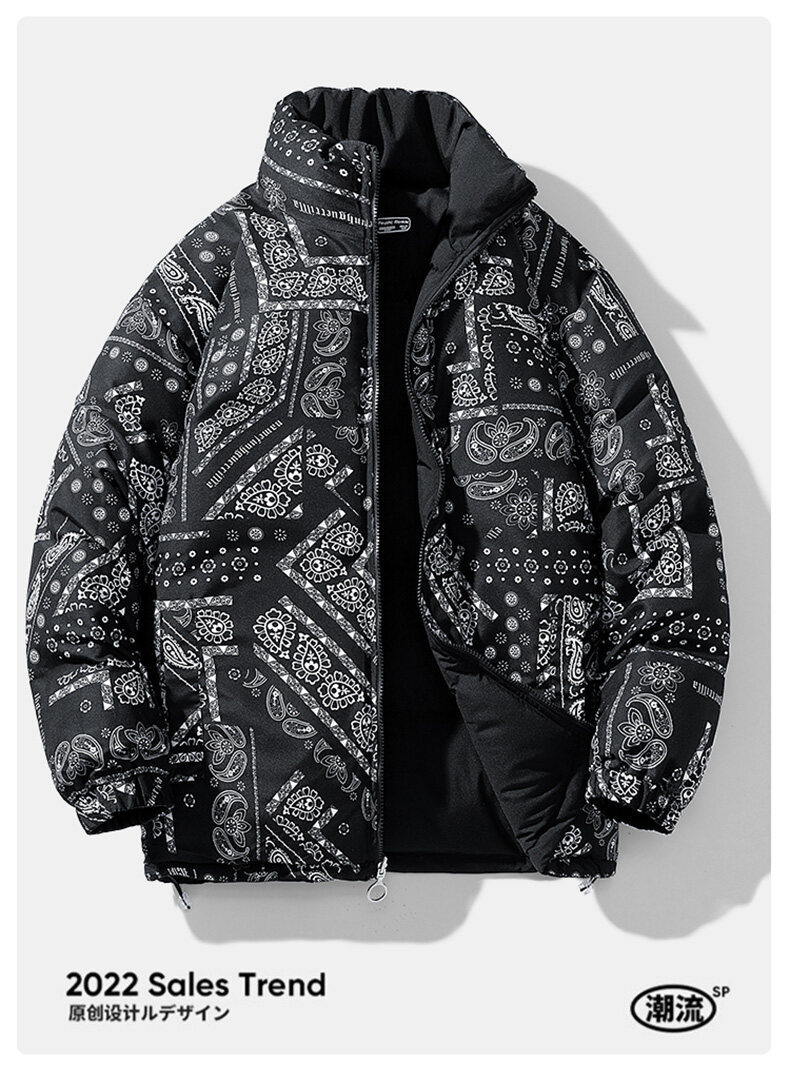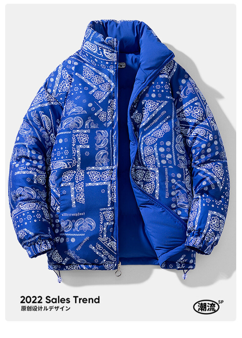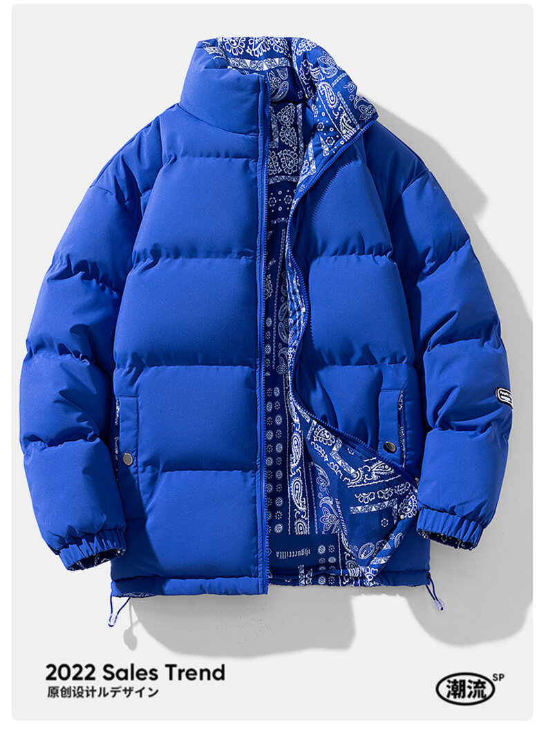冬の新型両面着腰果花綿服男女同項厚綿潮牌ゆるいファッションパン綿服