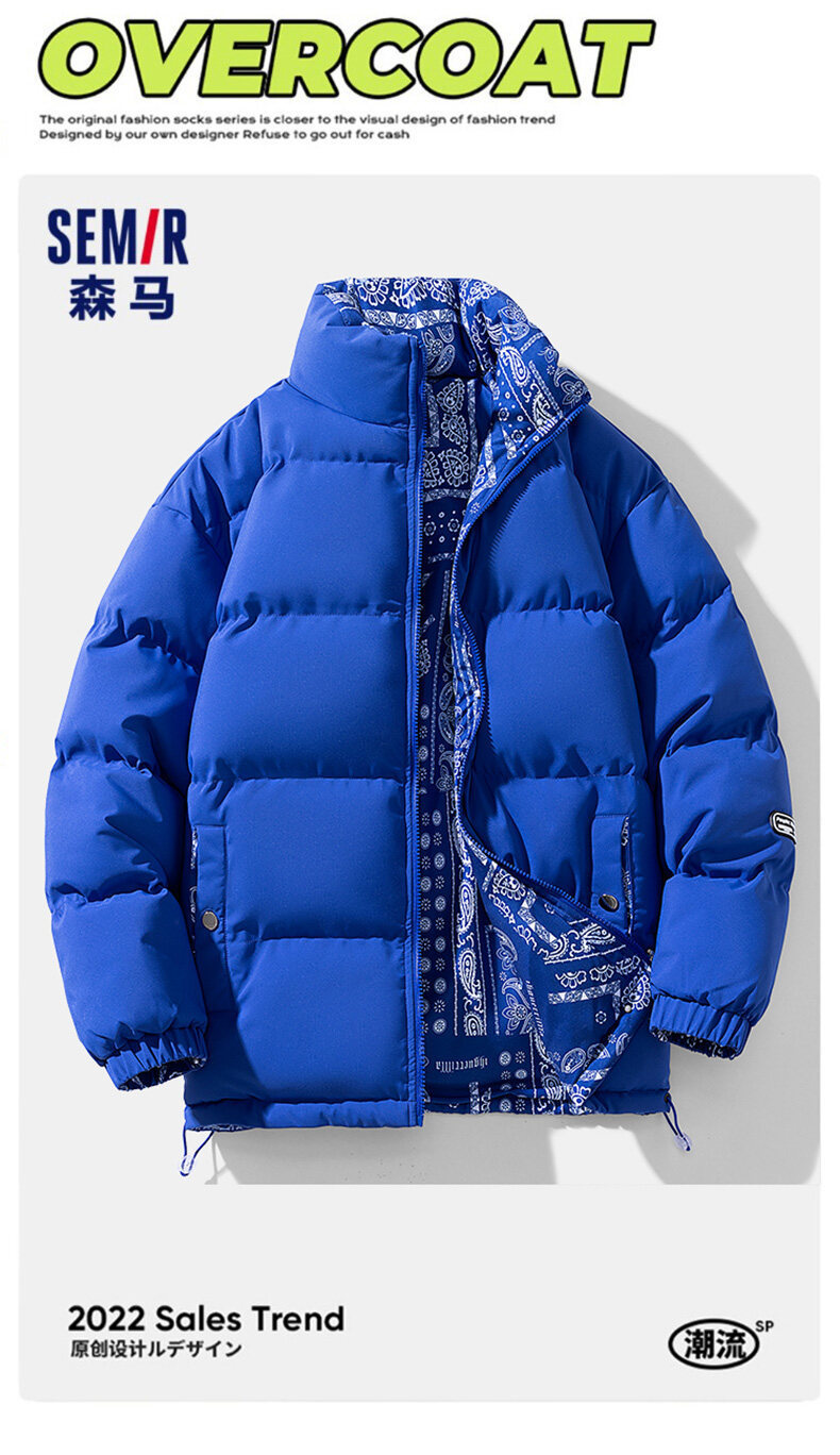 秋冬季棉衣男士潮牌加厚短款袄子冬天立领保暖外套羽绒双面穿棉服