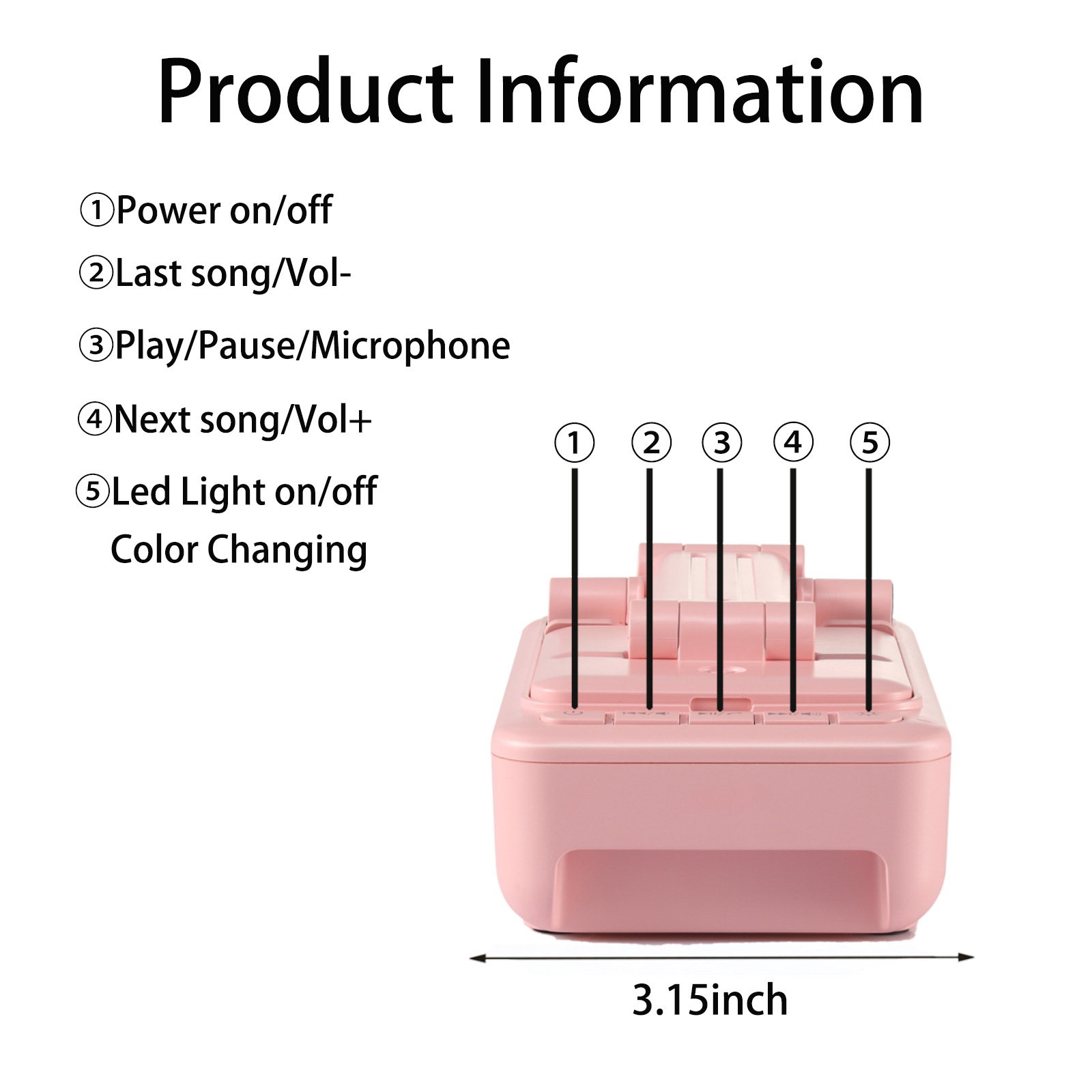 Function功能 :音箱speaker、手机支架、小夜灯LED