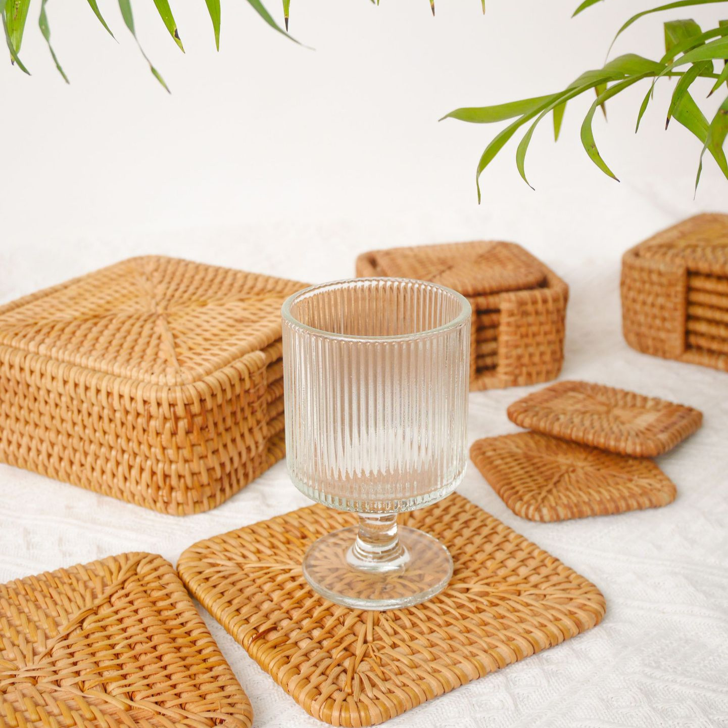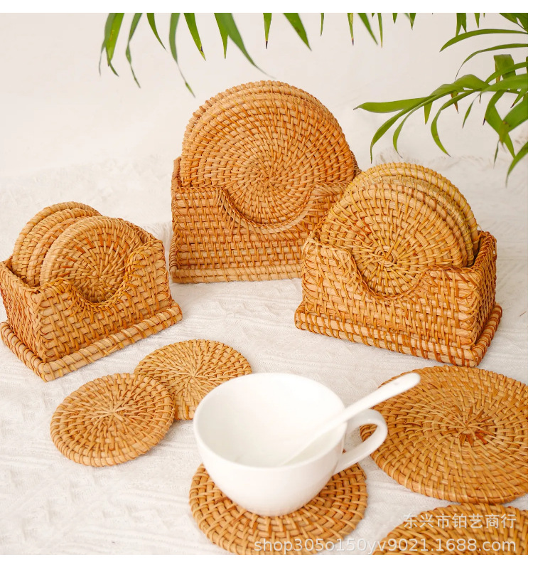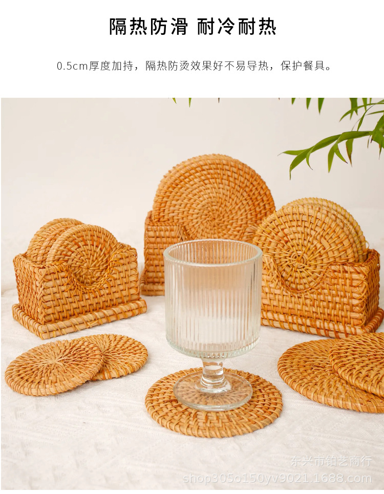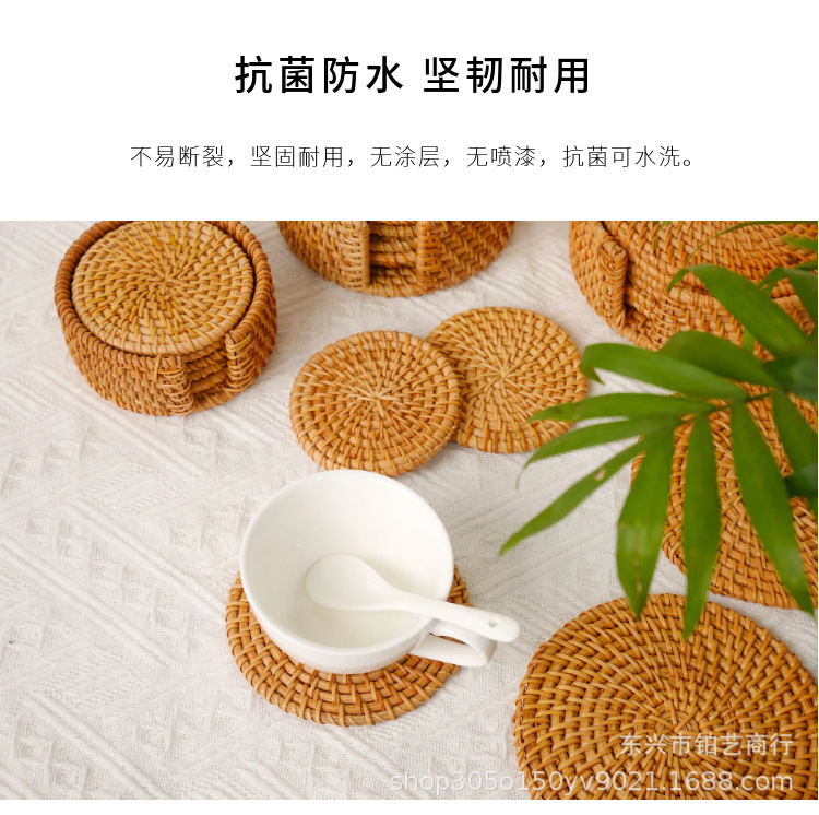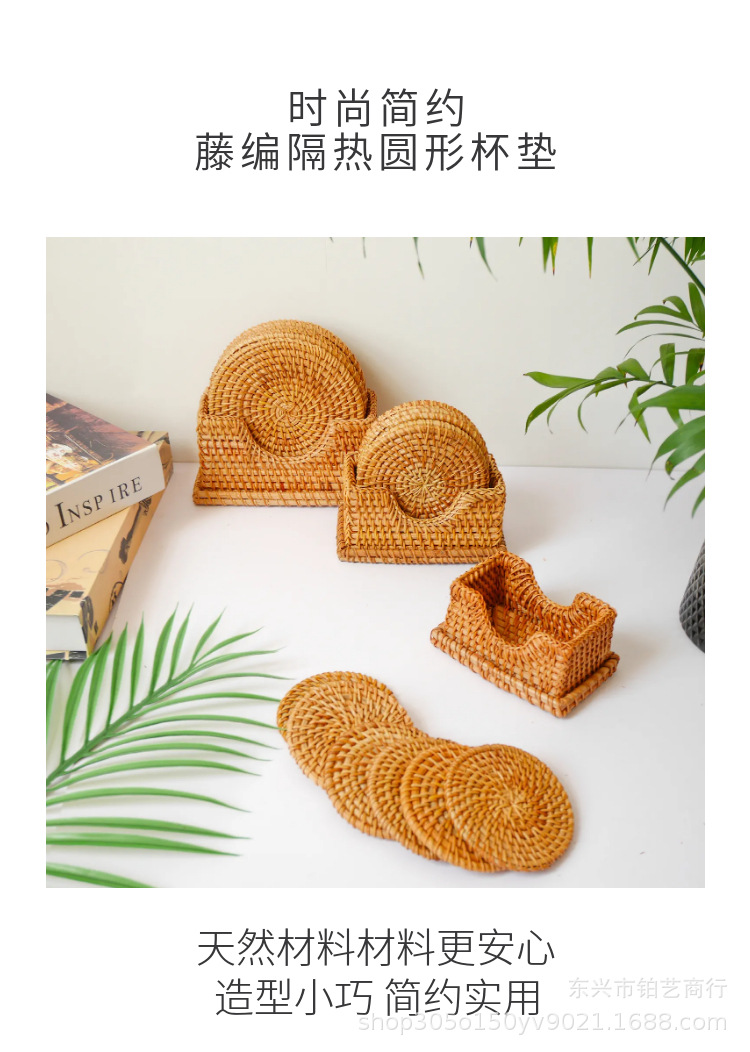 籐製ウォーターカップマット、ティーポットマット、茶道用プレースマット、テーブルマット、プレートマット、ボウルマット、断熱マット、北欧風カップマット