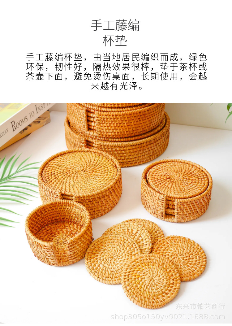 ベトナム籐編みコースター編み竹製断熱マット草編みテーブルマットポットカップ皿マット洋食マット