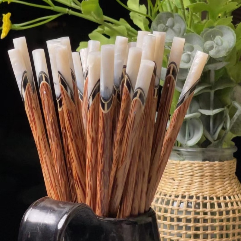 輸入天然貝殻実木箸ヤシ木滑り止め木箸手作り家庭用耐高温母貝丸頭箸