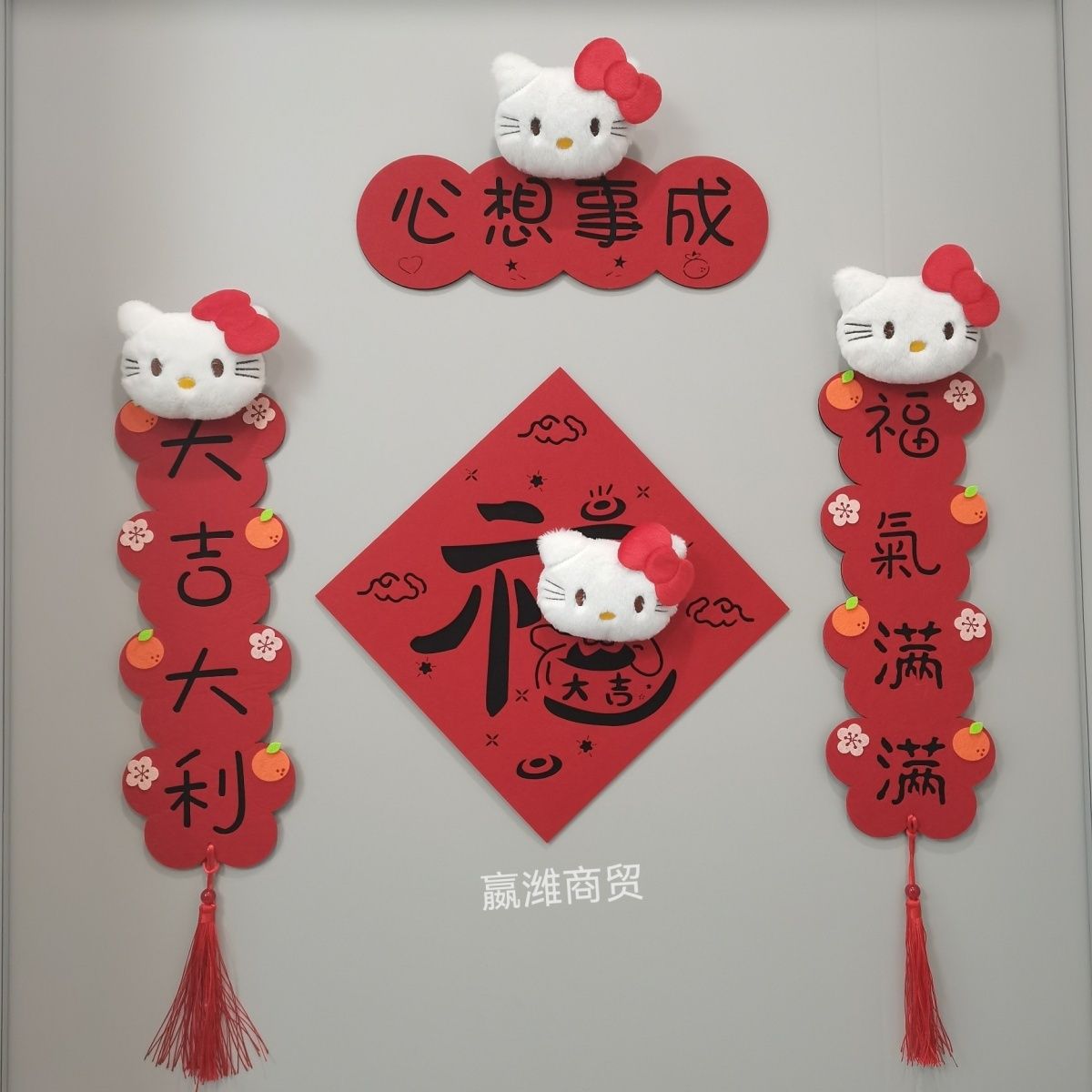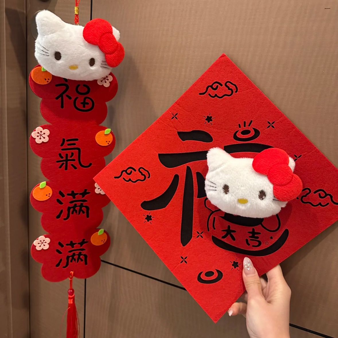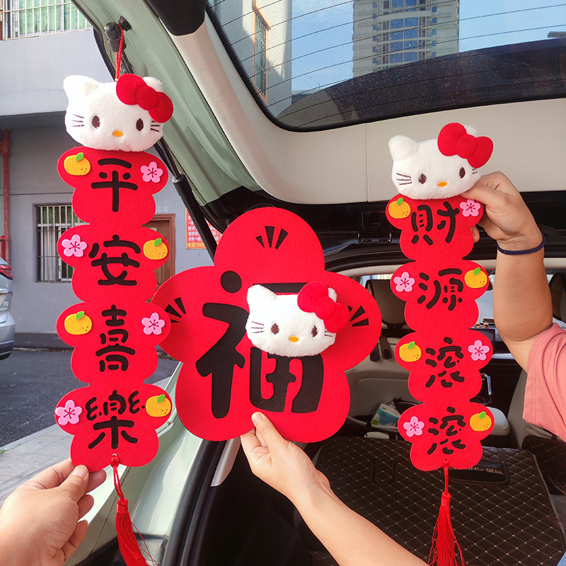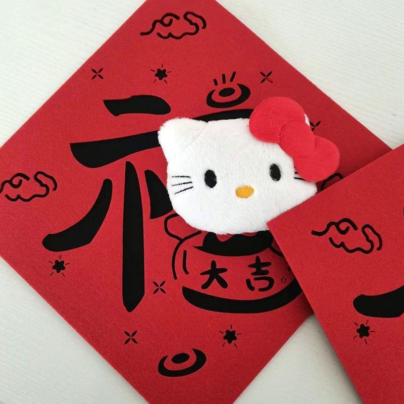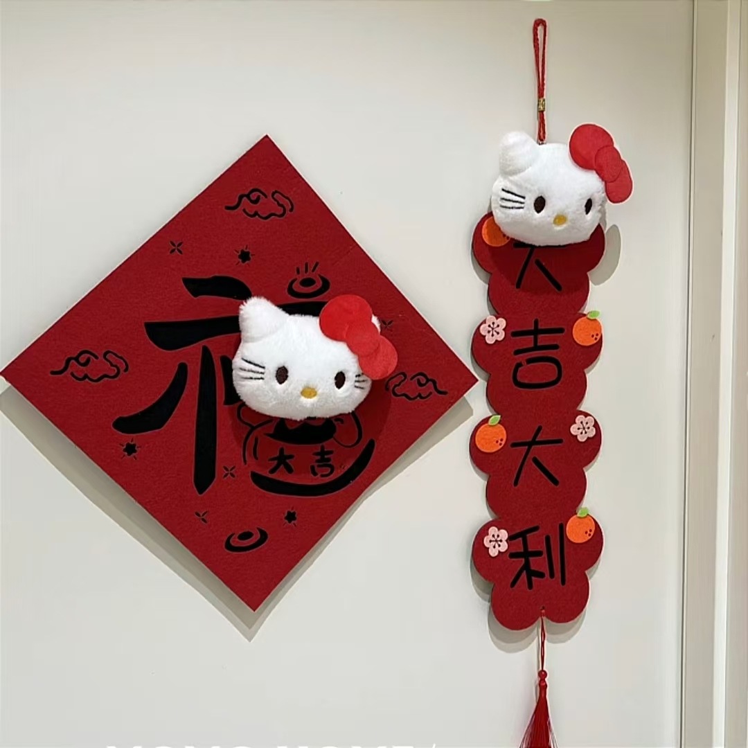 Hellokitty小对联2026新年毛毡布立体毛绒卡通挥春福字凯蒂猫挂件