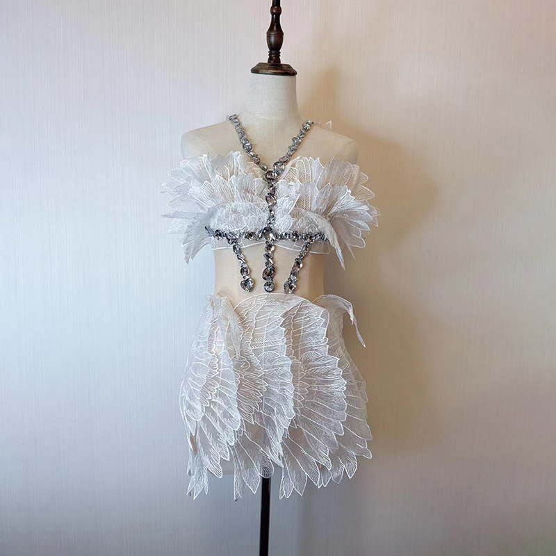 新しいハイエンドドレス、ファッショナブルでセクシーなチューブトップ、ラインストーンチェーン、ウエストを締めるショートスカートスーツ、バー、ナイトクラブ、パフォーマンス衣装