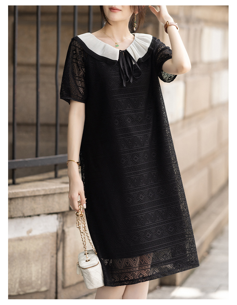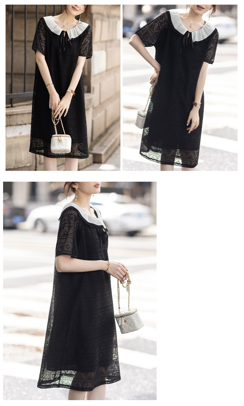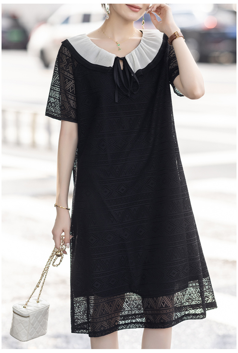 msdm581 ファッション中空デザインレースドレス 2025 夏の新しい気質年齢を減らす黒のスカート