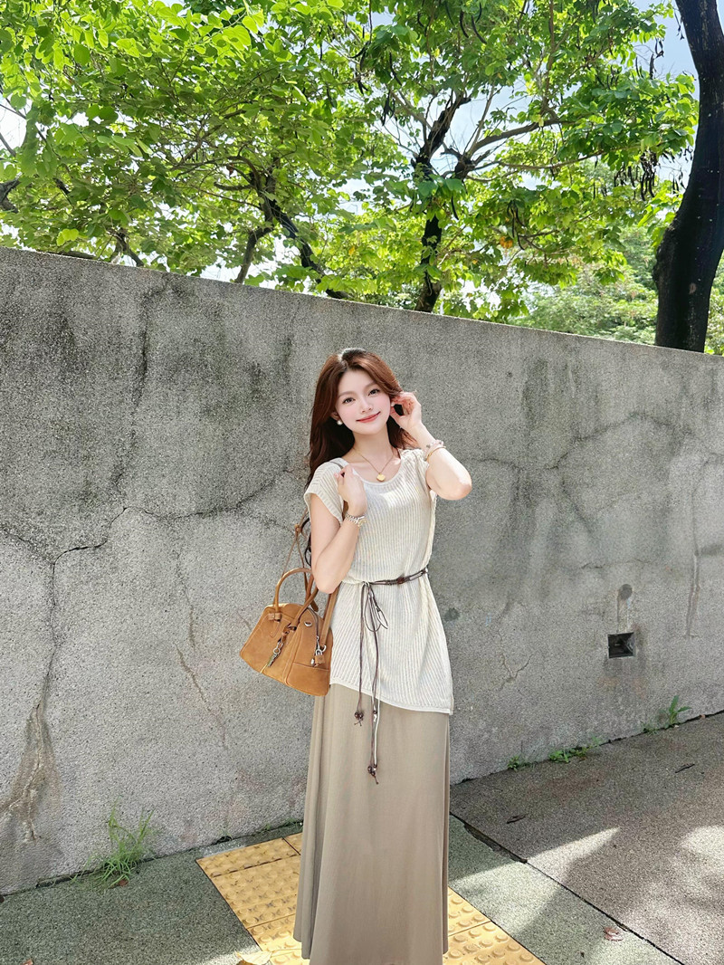 高級感と美しい夏のootdコーデ、韓国風の美しいスカートの女性用ツーピーススーツのセットです。