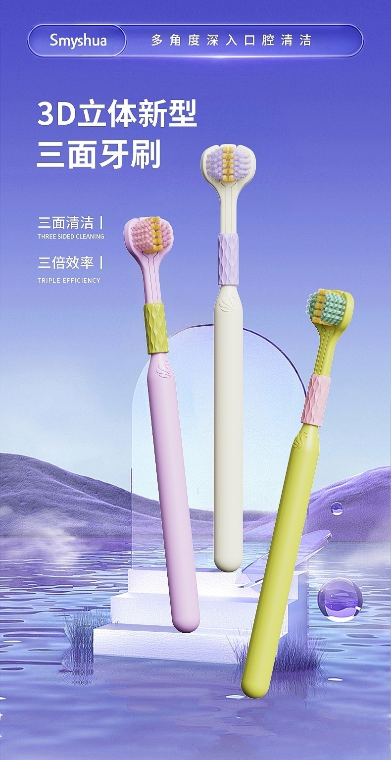 三面歯ブラシ成人軟毛歯ブラシドーパミンカップル男性女性3面包み式歯ブラシ歯具卸売り