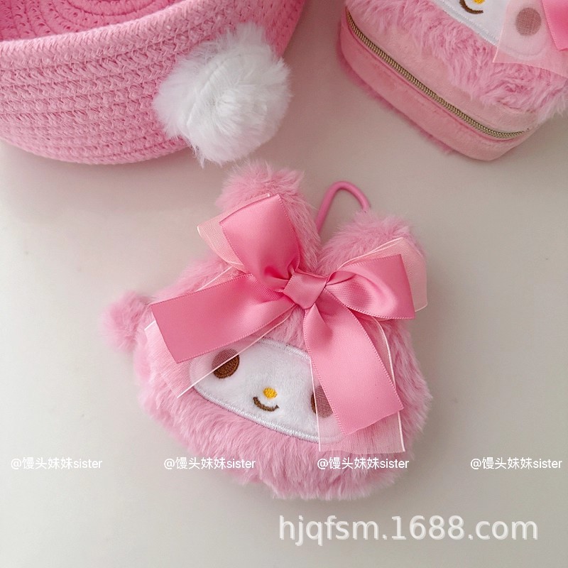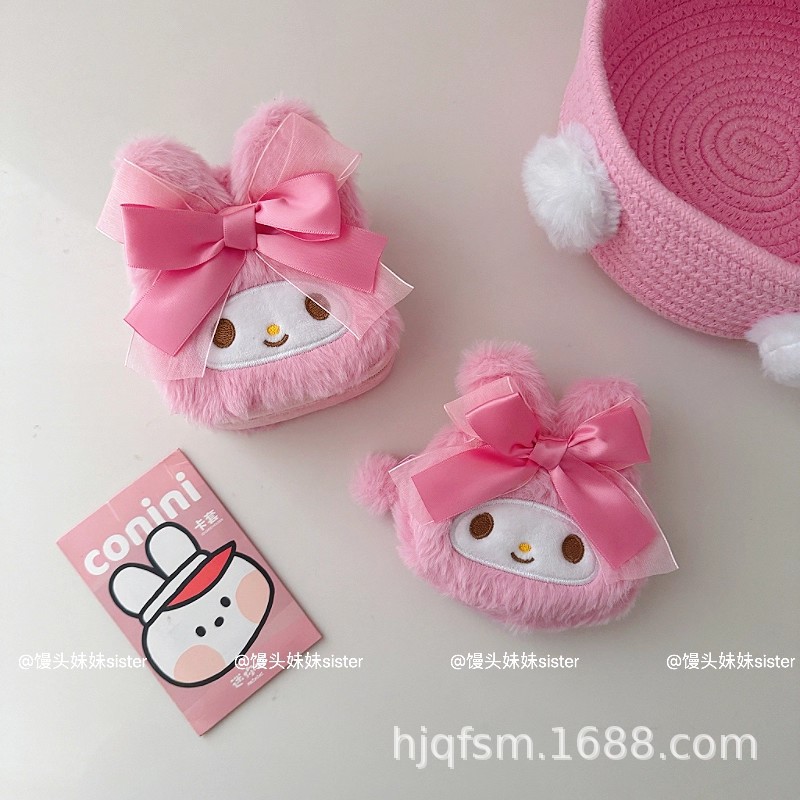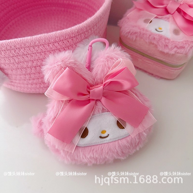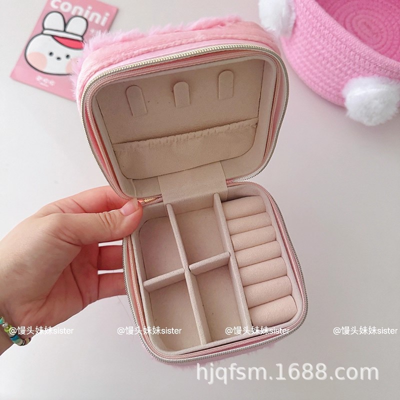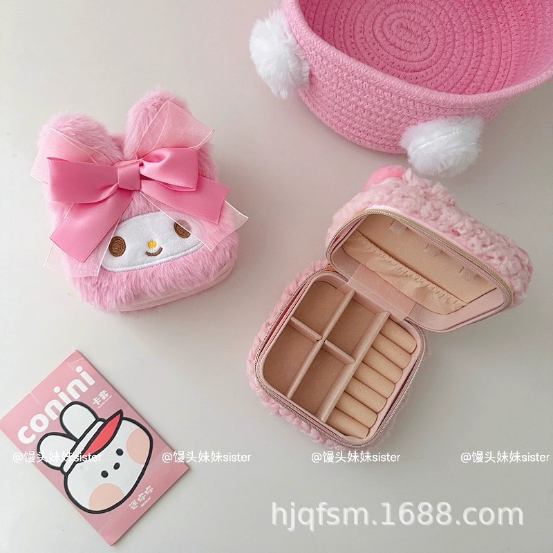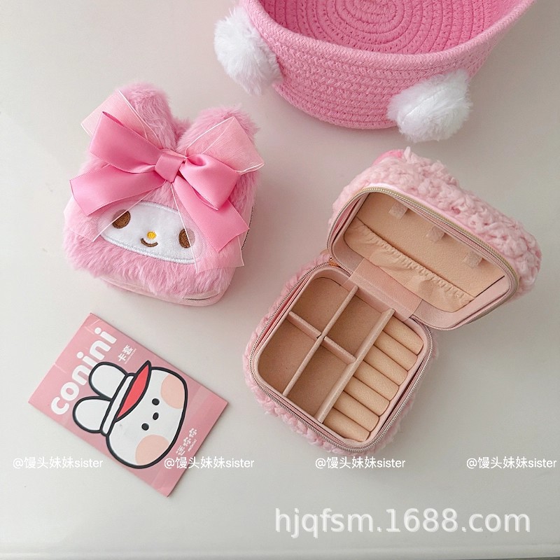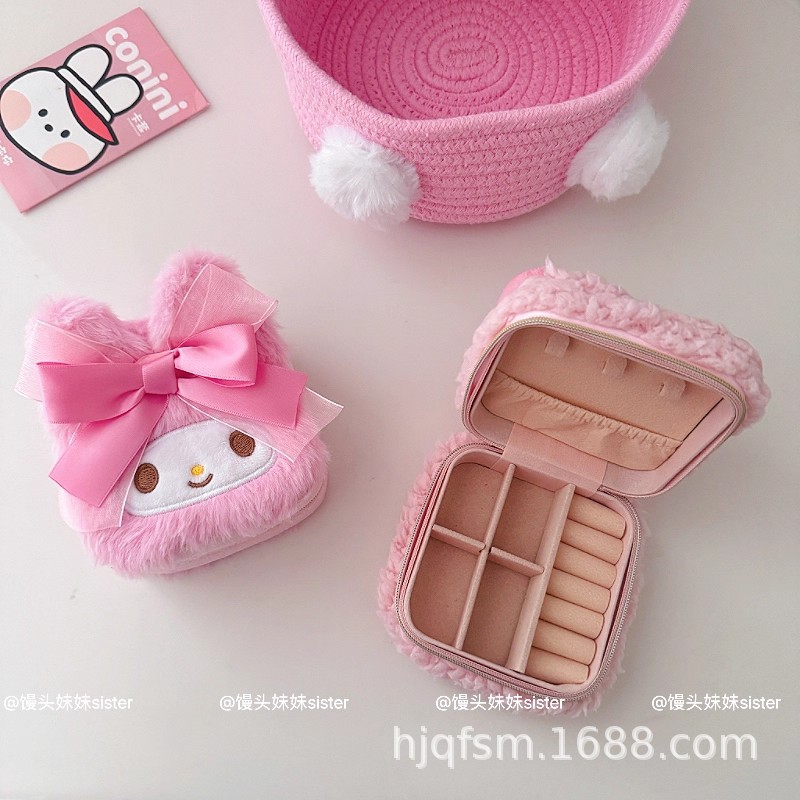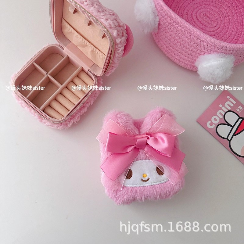 可爱卡通美乐蒂毛绒首饰盒旅行便携式戒指耳钉首饰收纳盒饰品盒子