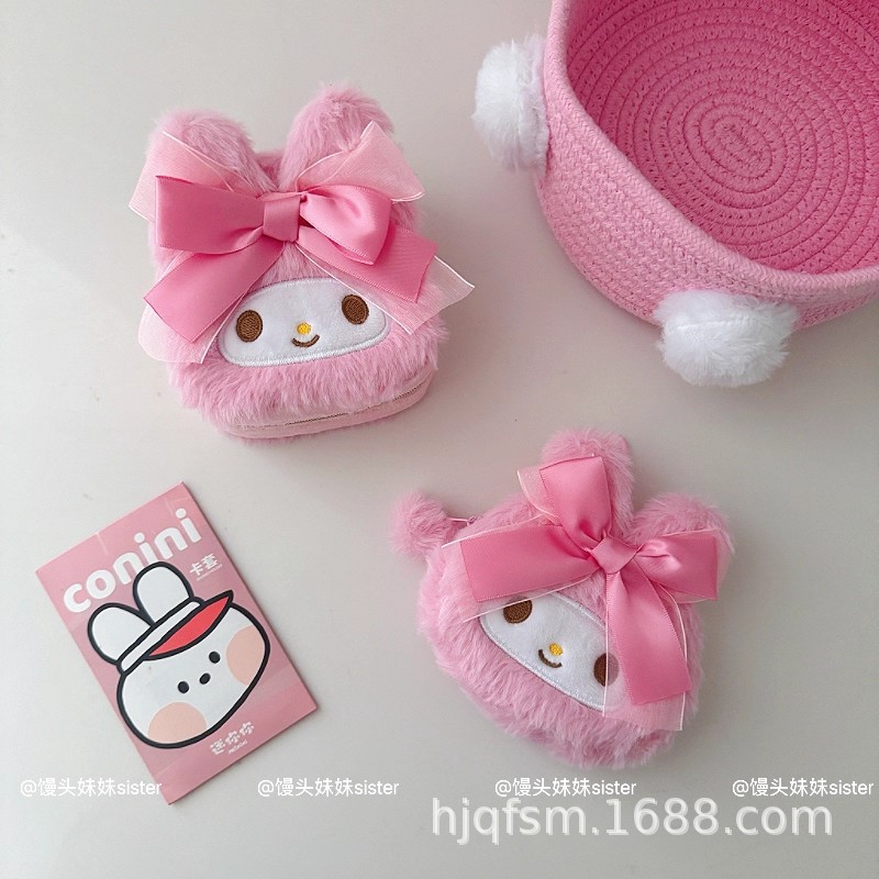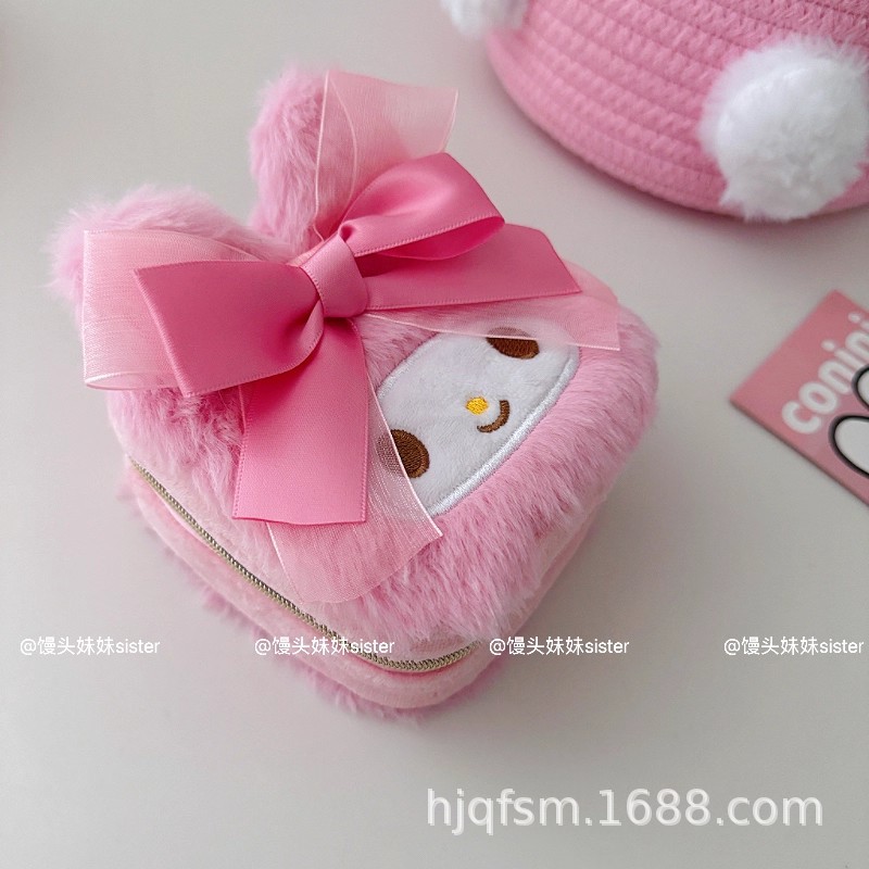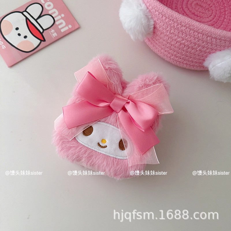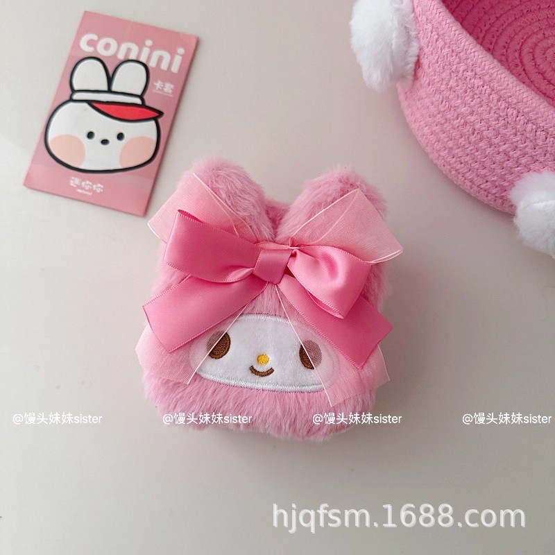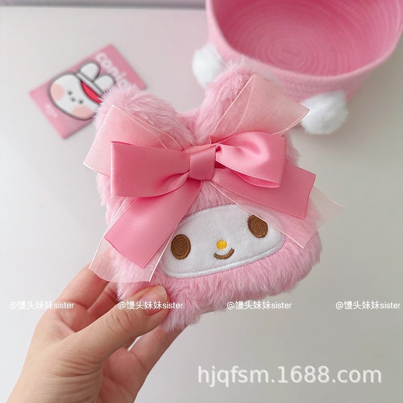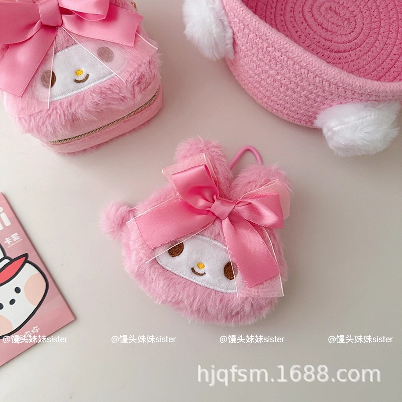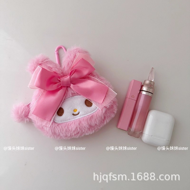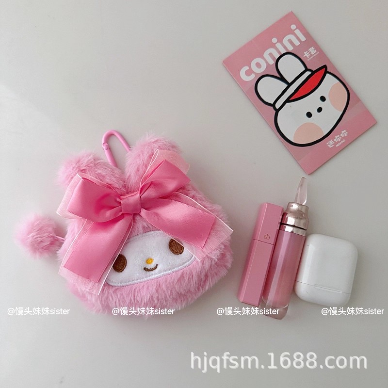 可爱卡通美乐蒂毛绒首饰盒旅行便携式戒指耳钉首饰收纳盒饰品盒子