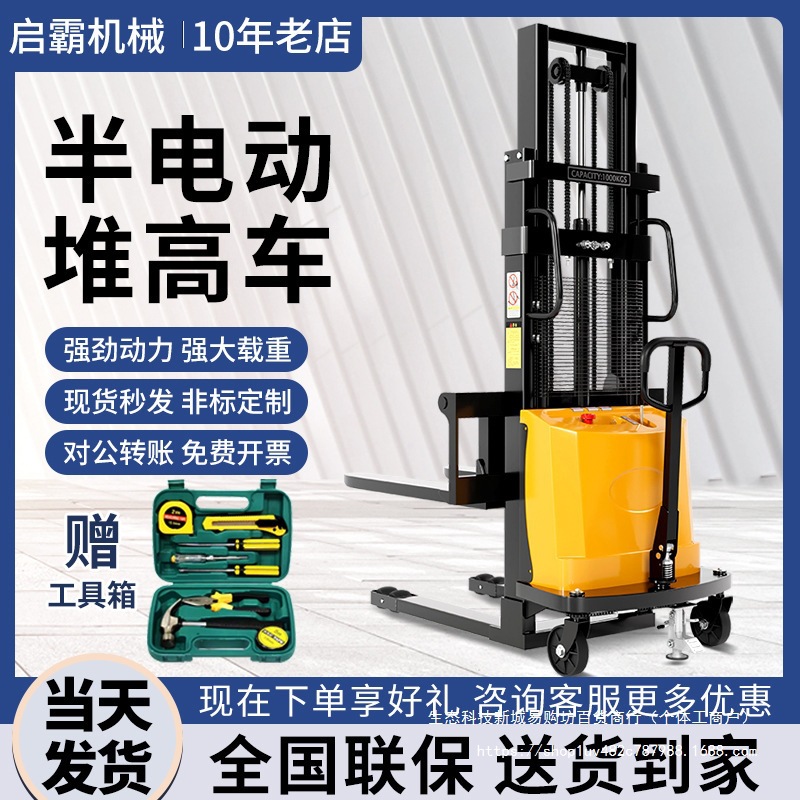 半電動フォークリフト 2トン小型スタッカートラック 1トン油圧リフター バッテリーリフトフォークリフト スタッカートラック 貨物荷役車