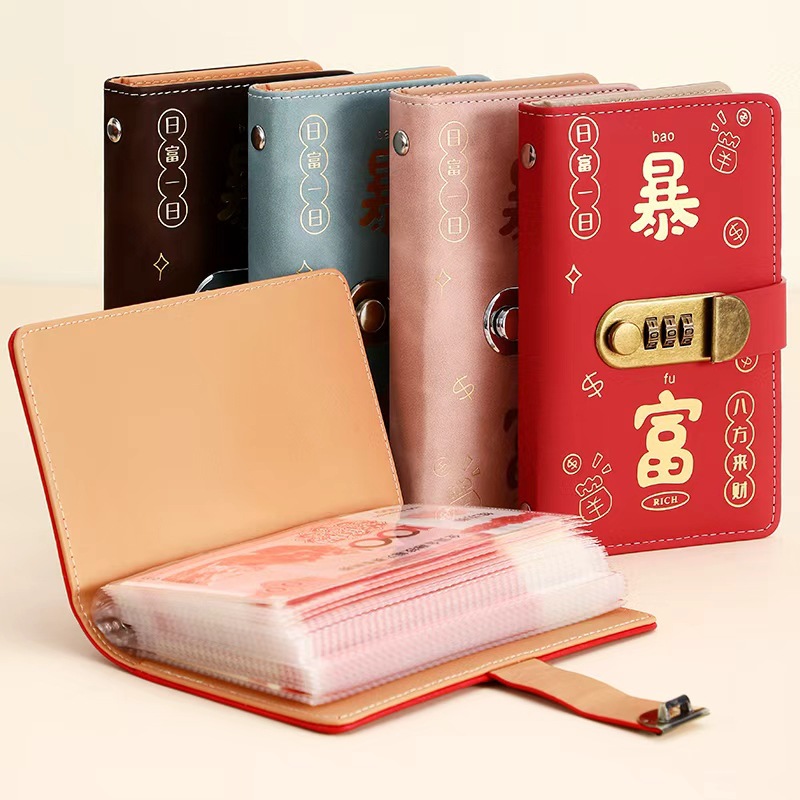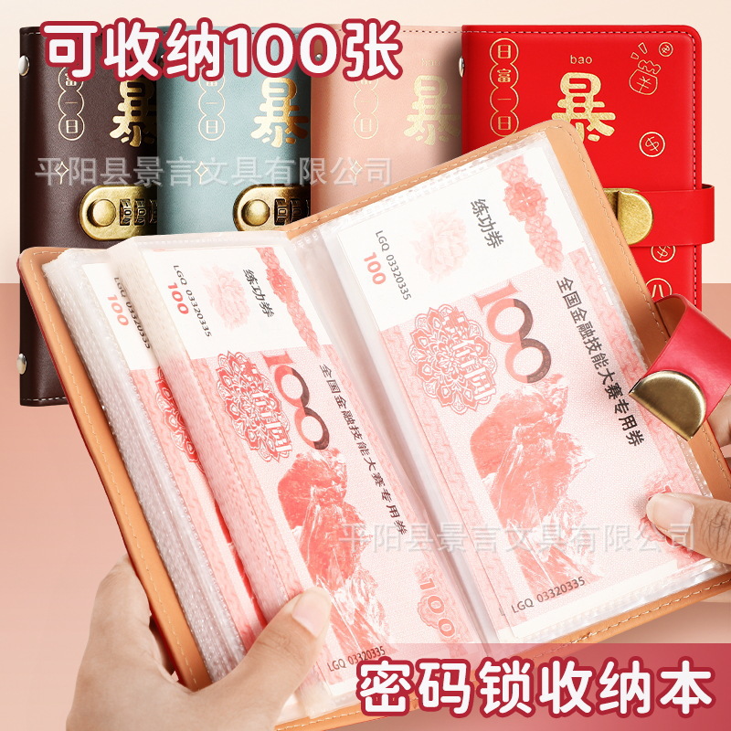 2025新款网红理财收纳册密码本高档复古存钱本可放现金收纳大容量