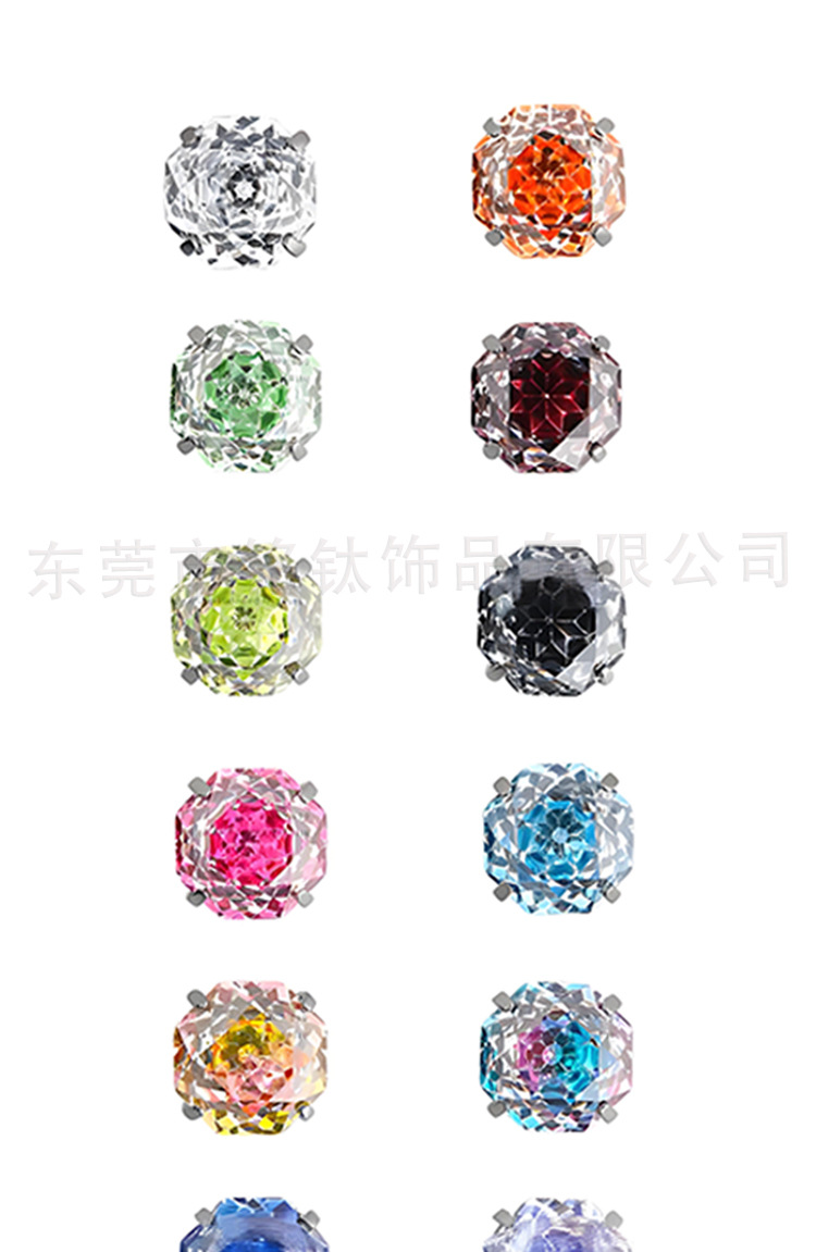 八边渐变爆闪6mm手捧花锆石G23内螺纹碗底钛合金耳骨钉耳蜗钉耳钉